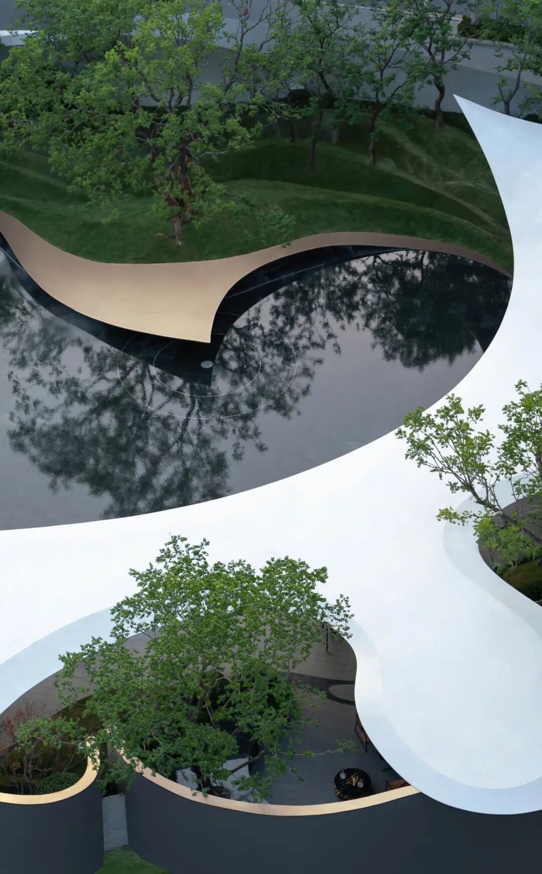 结合项目案名,及项目毗邻的“鸟屿浮云”、“青云谱”,我们将展示区景观主题定为“青云”。“青云”一词在中华文化中,既象征隐逸,也象征普世的成功,所谓“平步青云”。“青云”释义的双重性,与本案未来的业主身份所契合。“青云”与“無山”互为表里,为 “無山”提供了最好的注解。