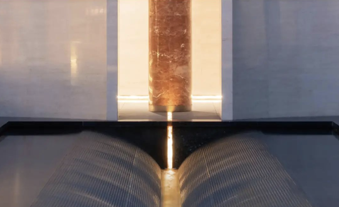 展示区景观场所较小,思路切入点主要体现地铁归家的独立私有感场所,立面语汇也在尝试经典复古与未来简约的融合,墙地一体的颜色也希望能减弱负一层场所的不利。