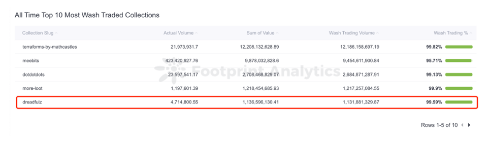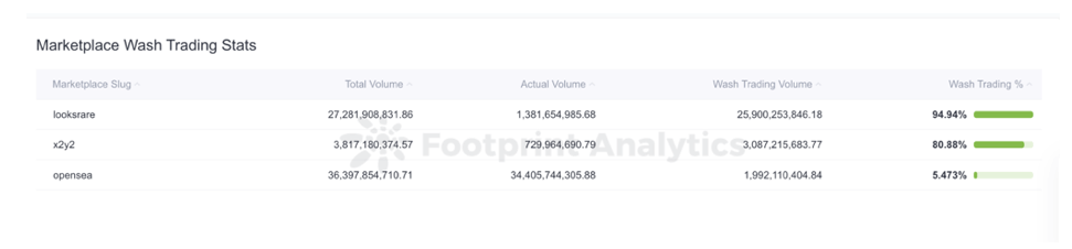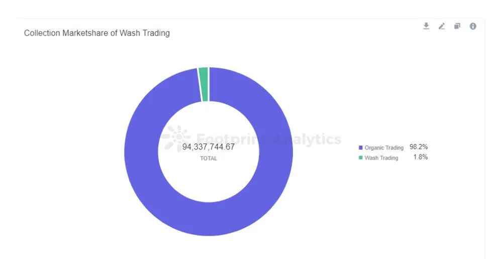 根据Footprint Analytics显示,清洗交易占所有NFT交易量的近一半。