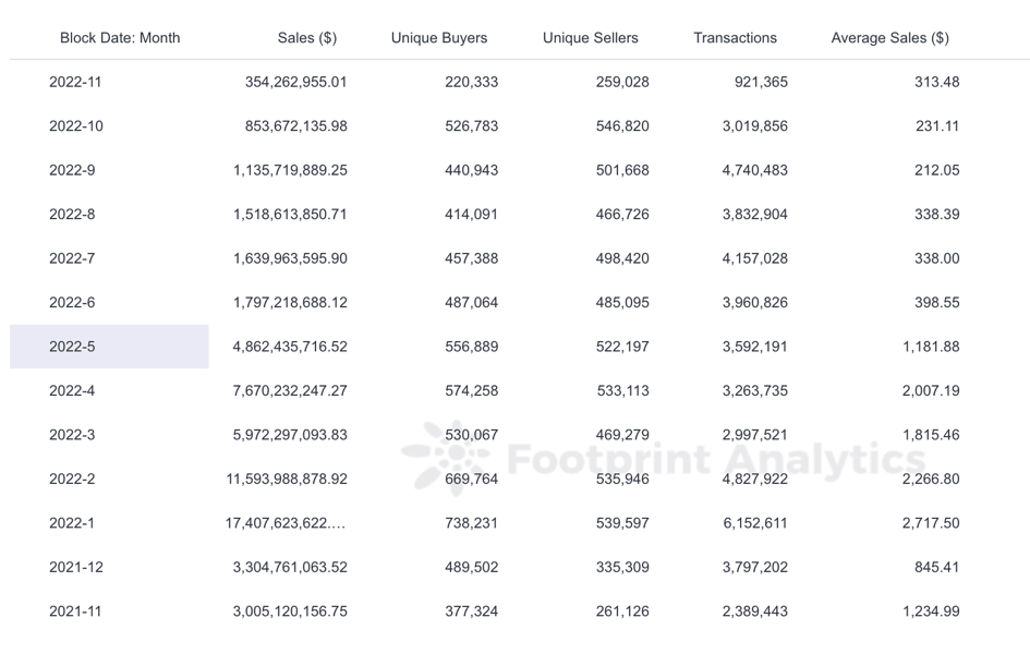 10月份全球NFT销售额超过8.5亿美元,总交易量约为300万笔。