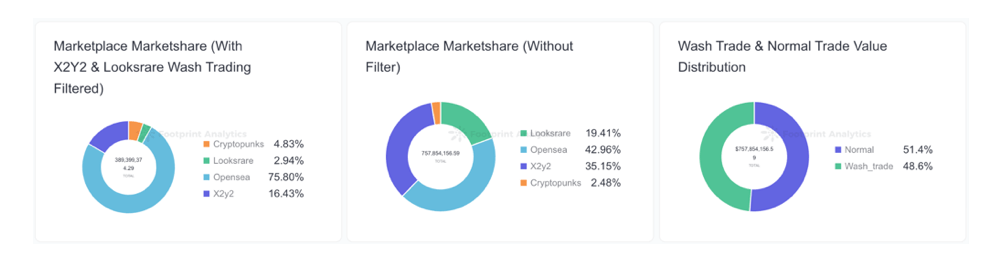 例如,数据显示,X2Y2(前三大 NFT 市场之一)上 81% 的交易都是清洗交易。X2Y2 清洗交易的主要原因是基于交易量的每日交易奖励。