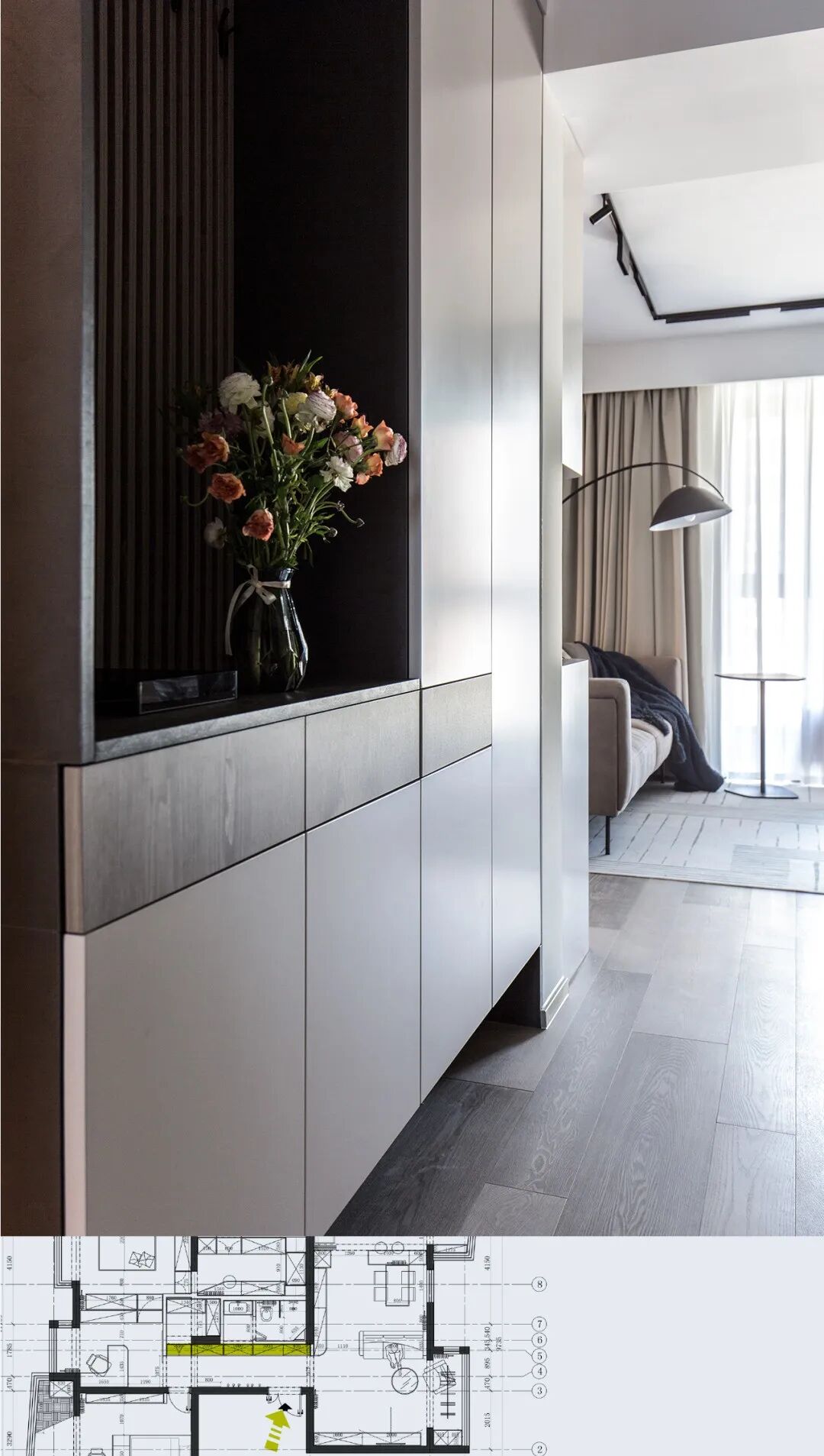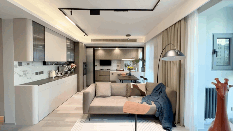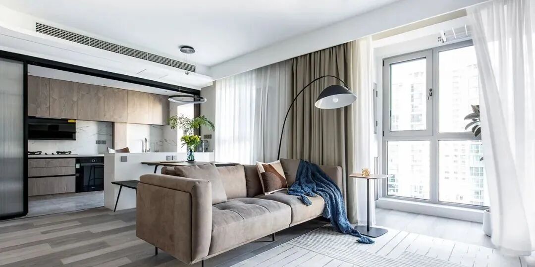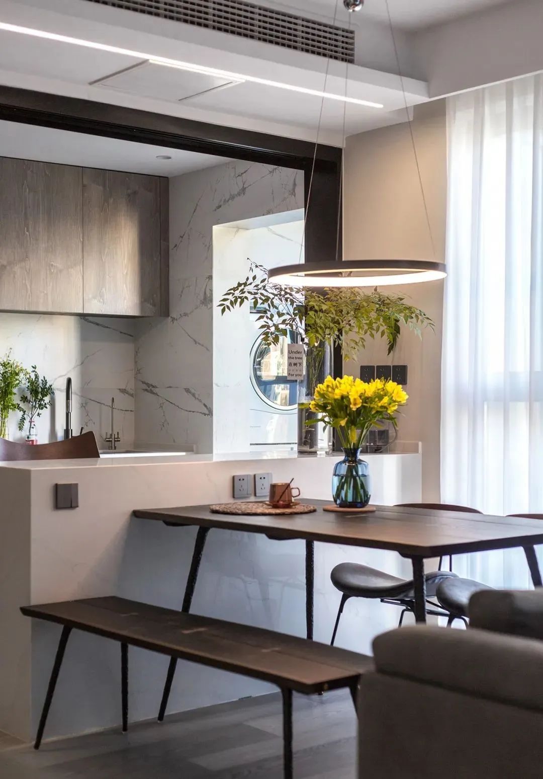 这是一套面积为112平米的两居室,室内设计运用简洁的线条、最少的装饰、自然的颜色、开放式布局、低矮的家具,这些现代设计元素,为居住者带来了一致的体验。