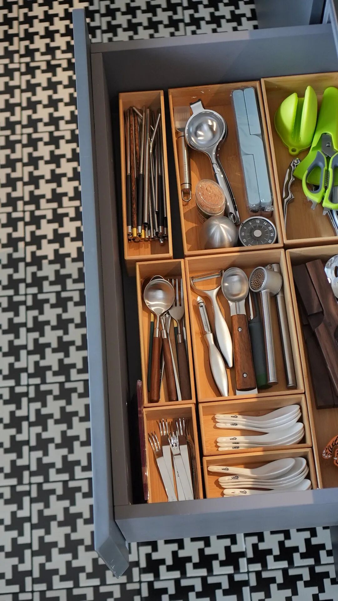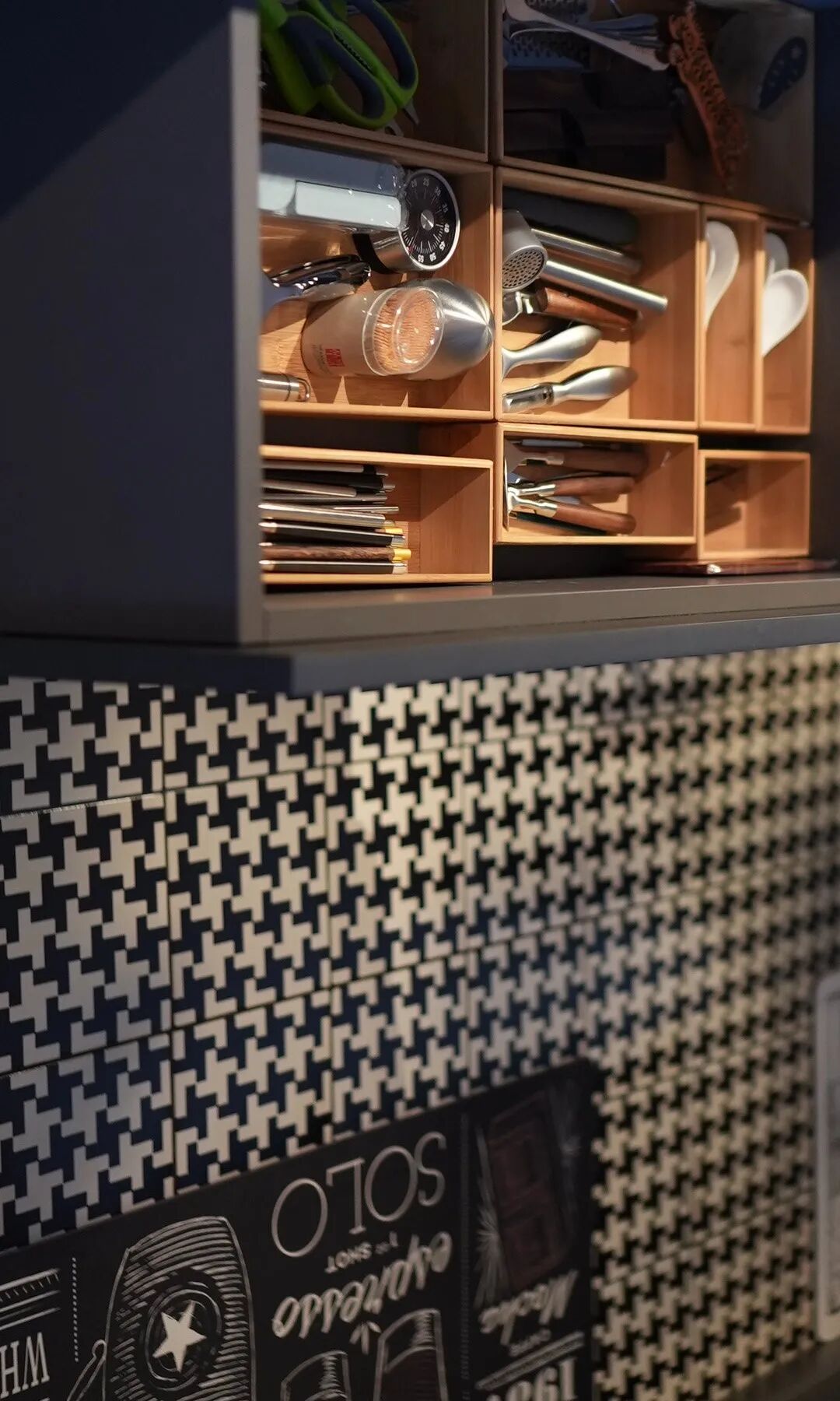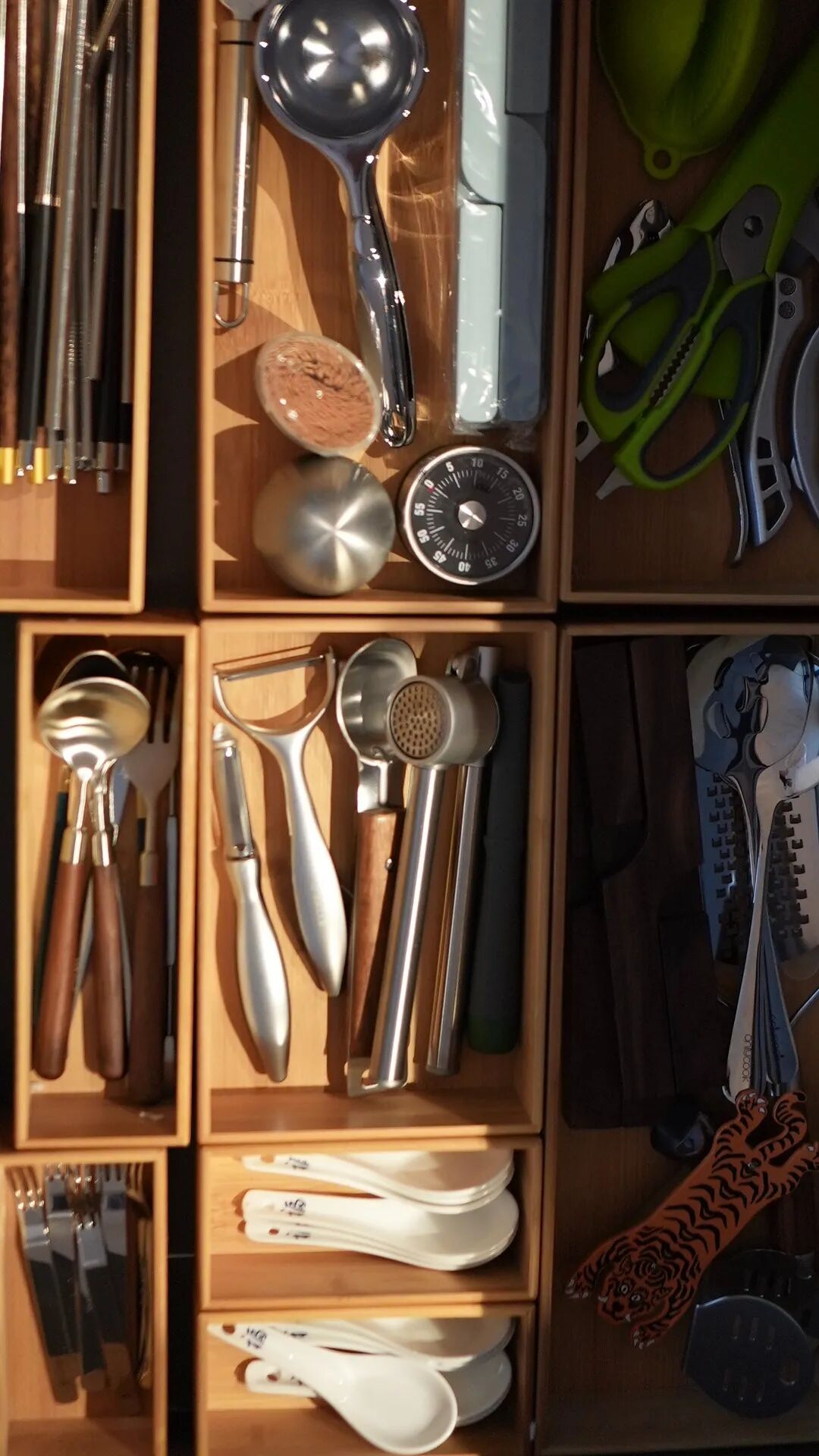 FFstudio:厨房的抽屉柜内也做了很多分类,方便随身取用想要的厨房小工具。