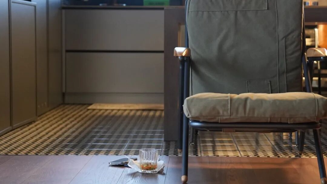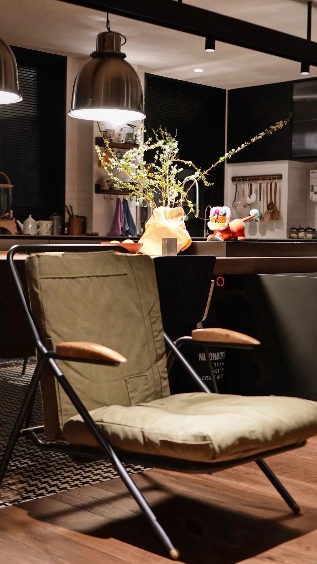 FFstudio:Dulton的斗柜,再放上几瓶威士忌,在侘寂风台灯的加持下,有了一丝在户外野奢的感觉。