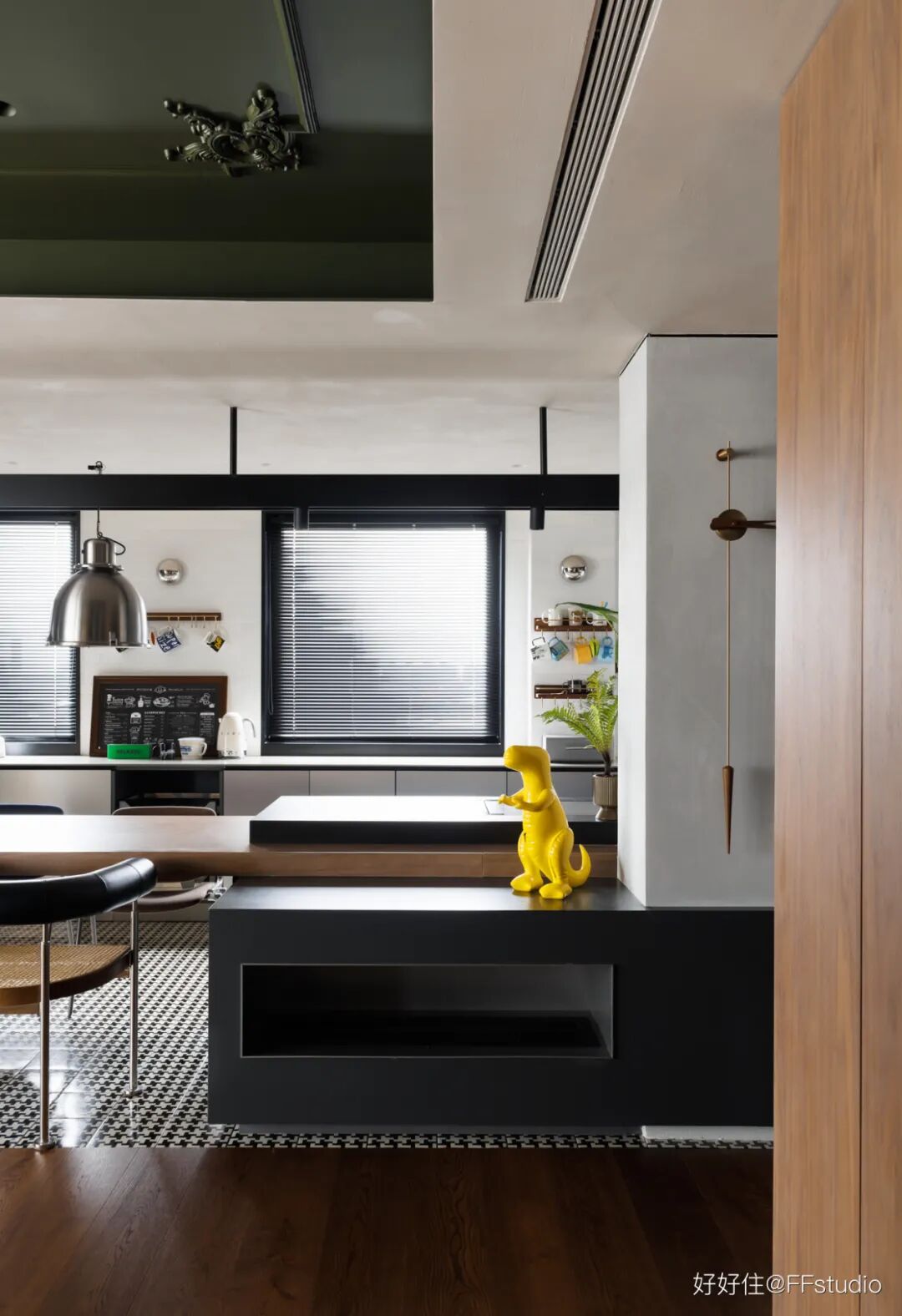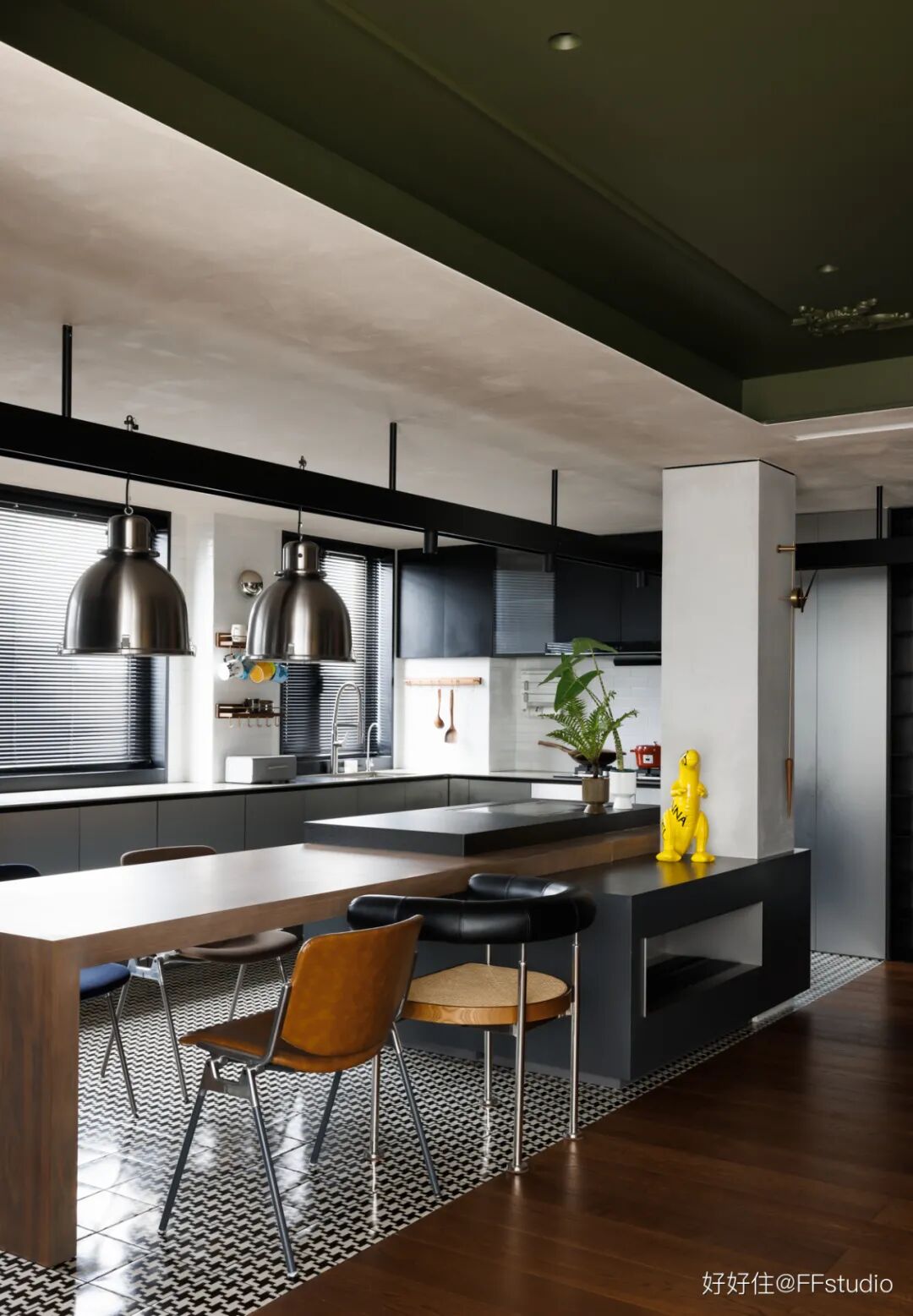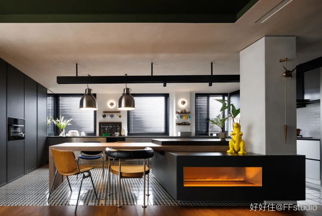 FFstudio:餐厅和厨房在一起,形成一个岛形的餐厨一体化空间,具体的设计前面也有写过。