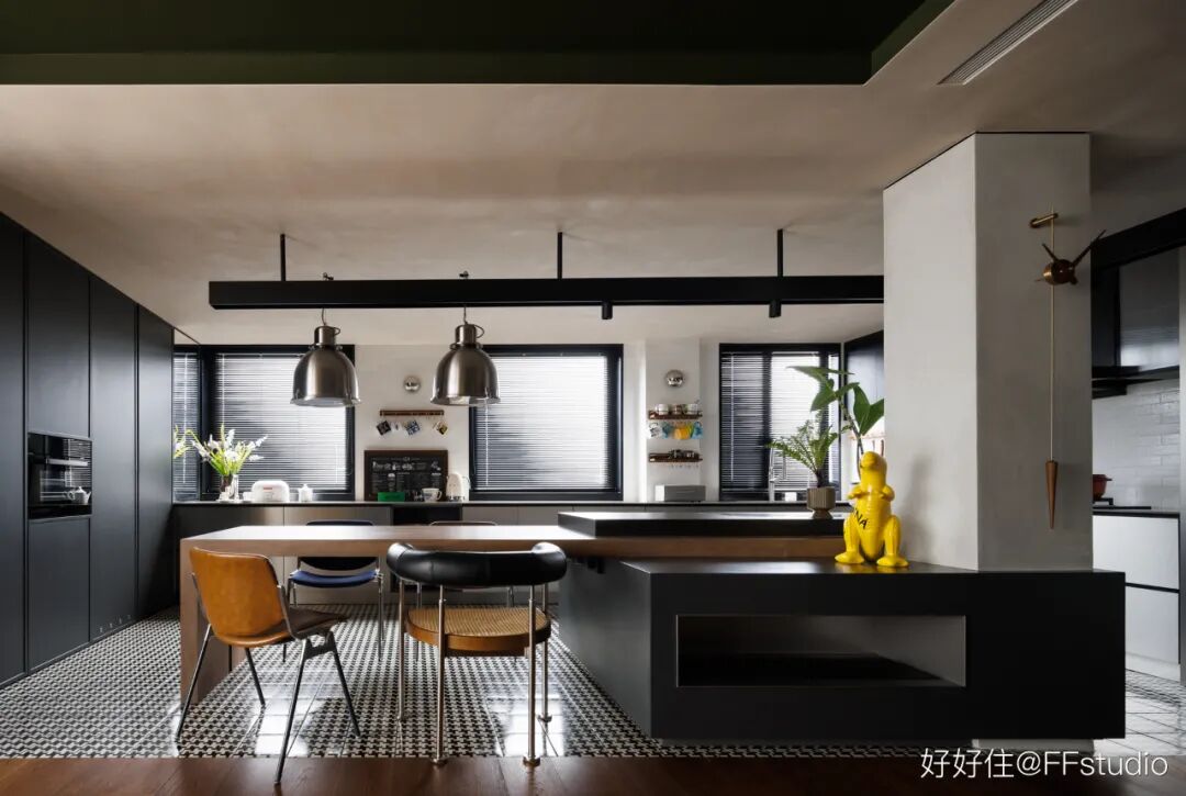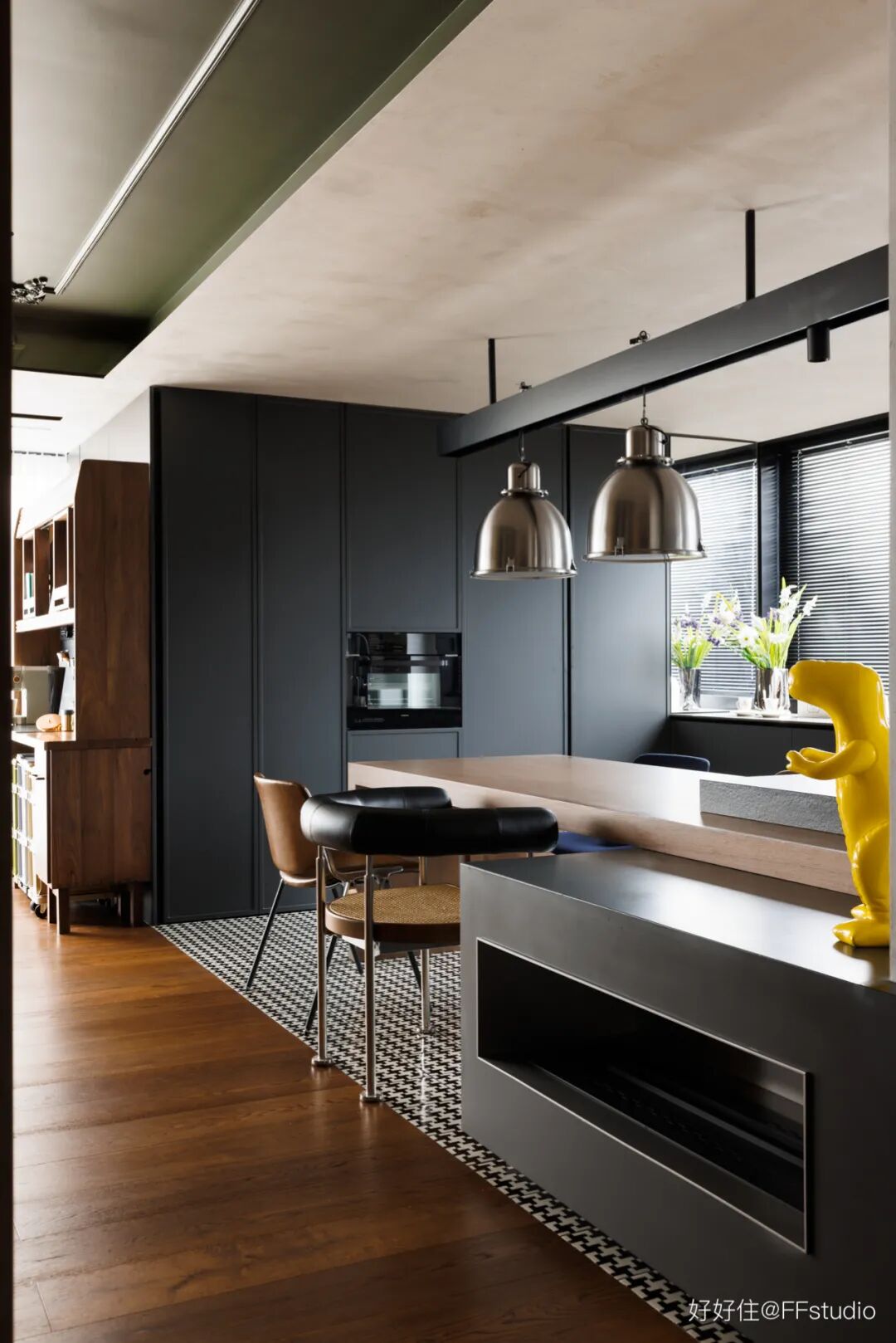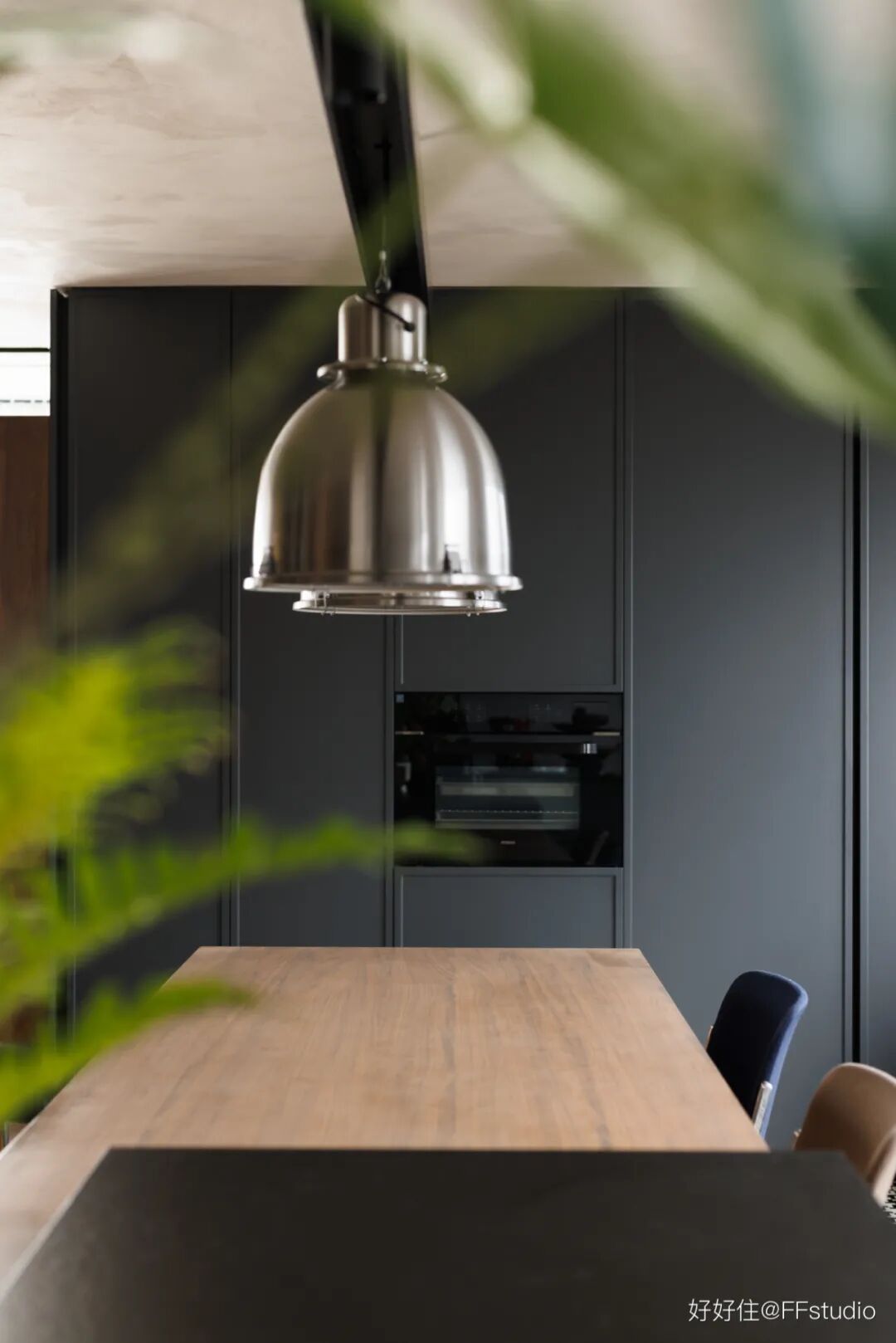 FFstudio:餐厅和厨房在一起,形成一个岛形的餐厨一体化空间,具体的设计前面也有写过。