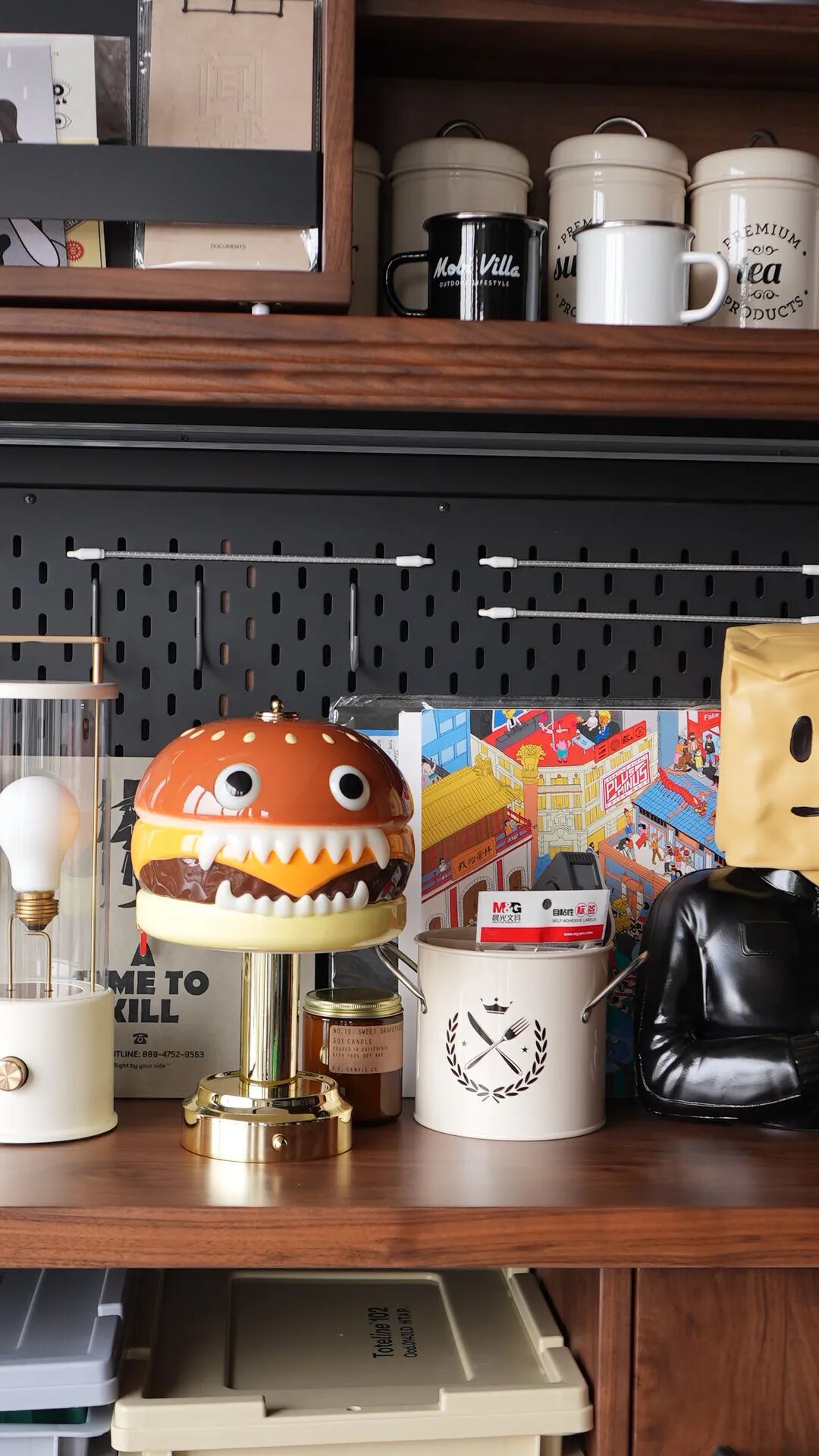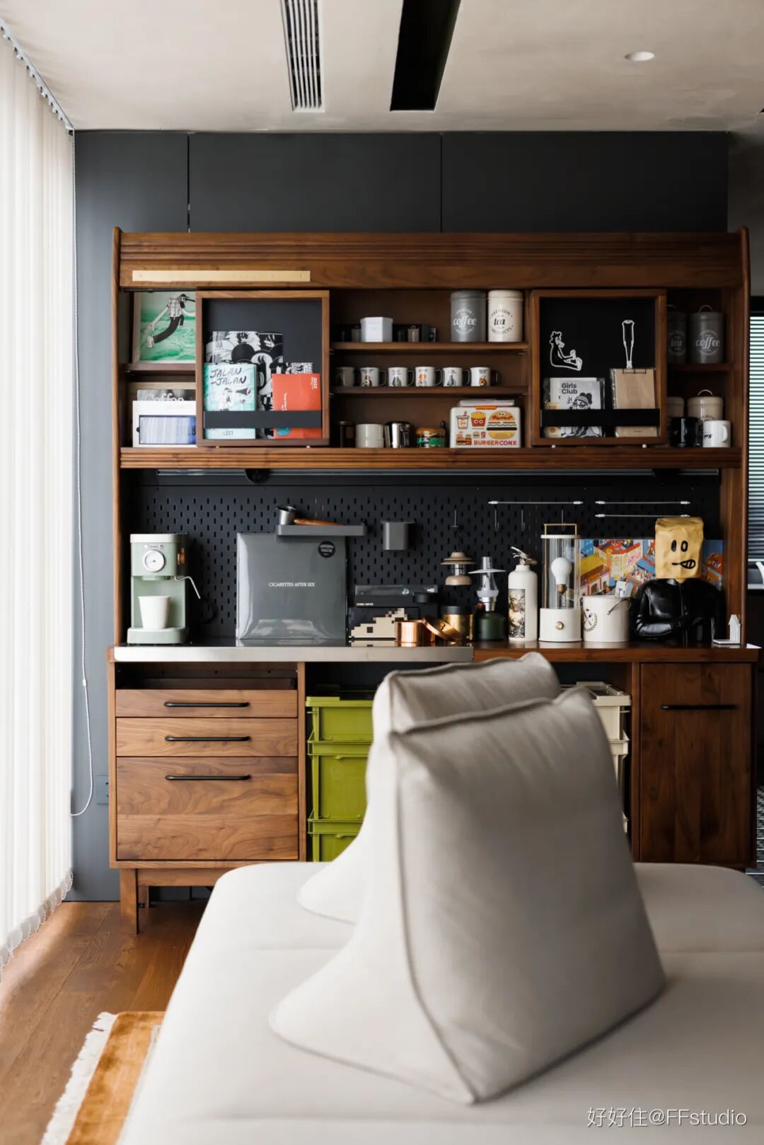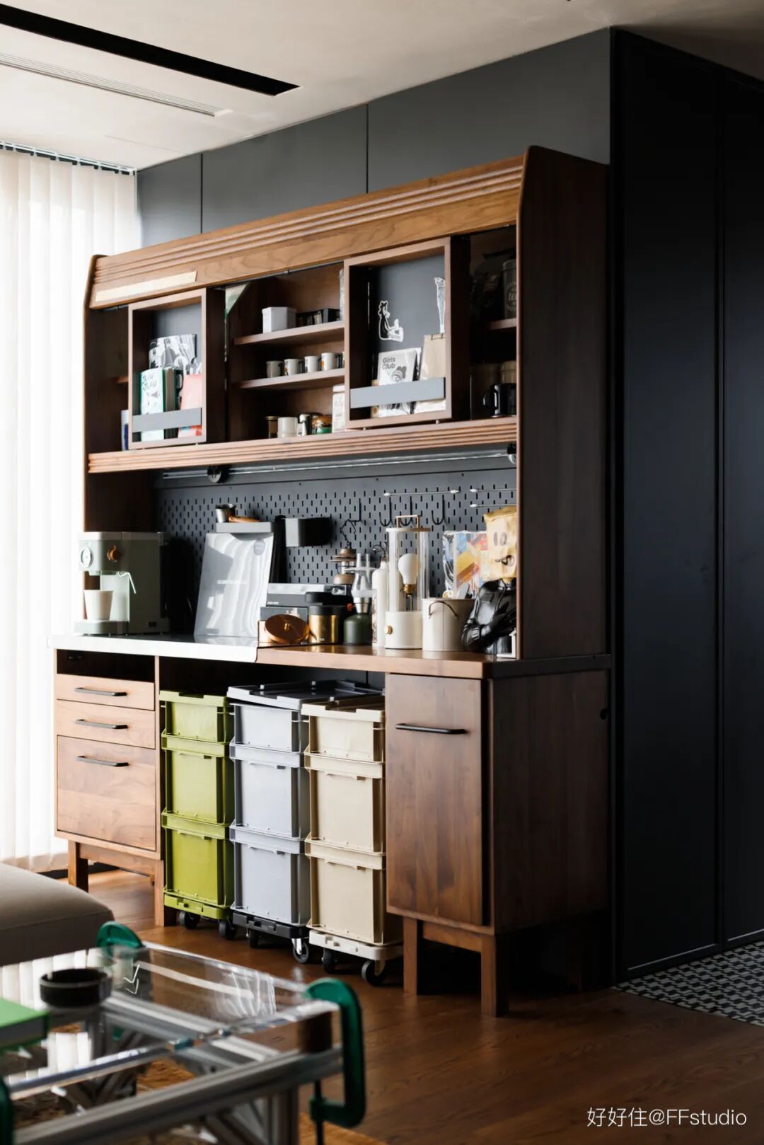 FFstudio:我平时买的一些纪念品、咖啡机、黑胶,都被放在这里,形成家里的一个zakka角落,平日里光是摆弄这些东西都十分治愈。而且这个柜子还很能装,非常适合跟我一样有囤物癖的人。