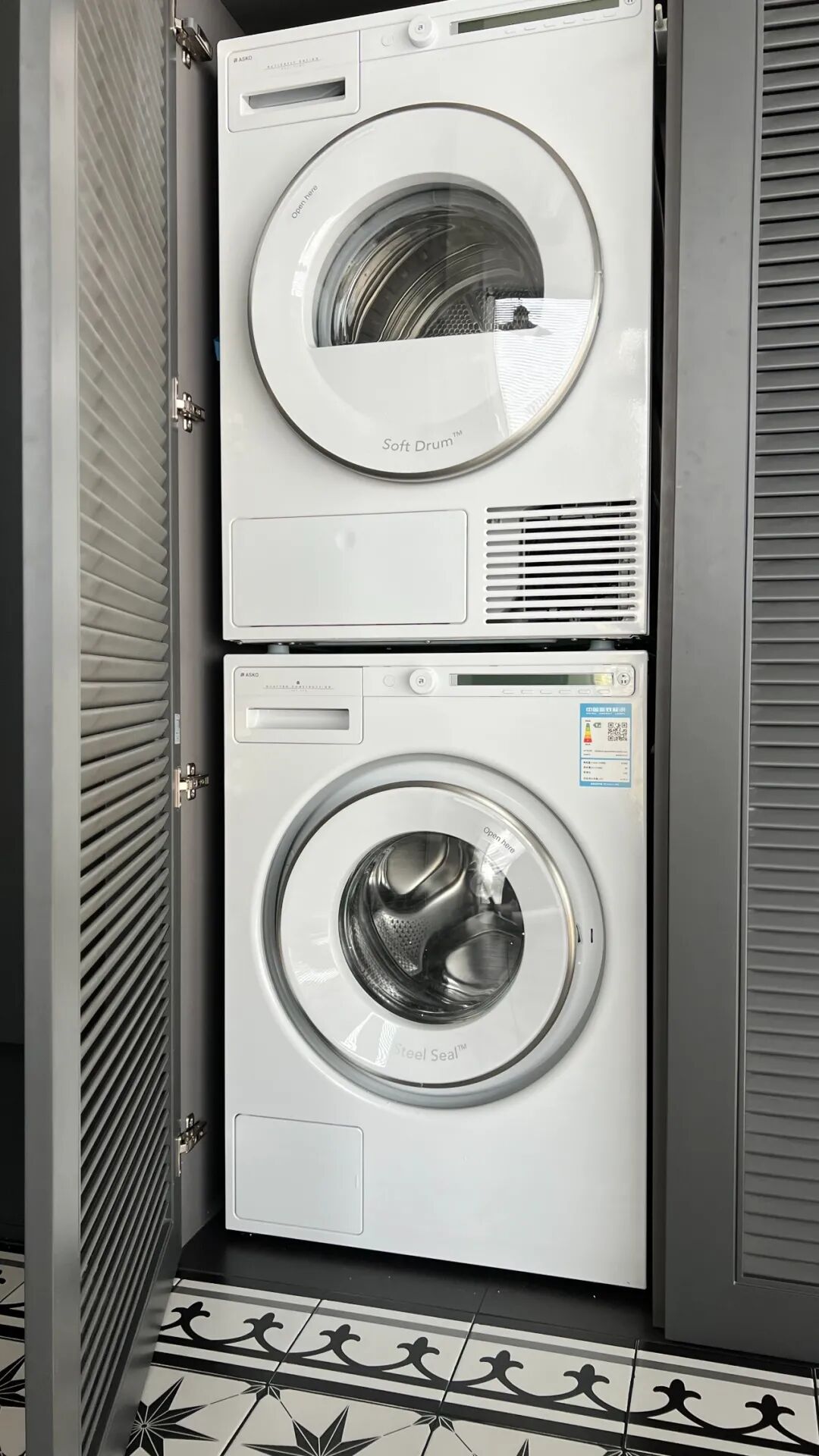 FFstudio:asko的洗烘叠放在柜子里,关上柜门也很美观。