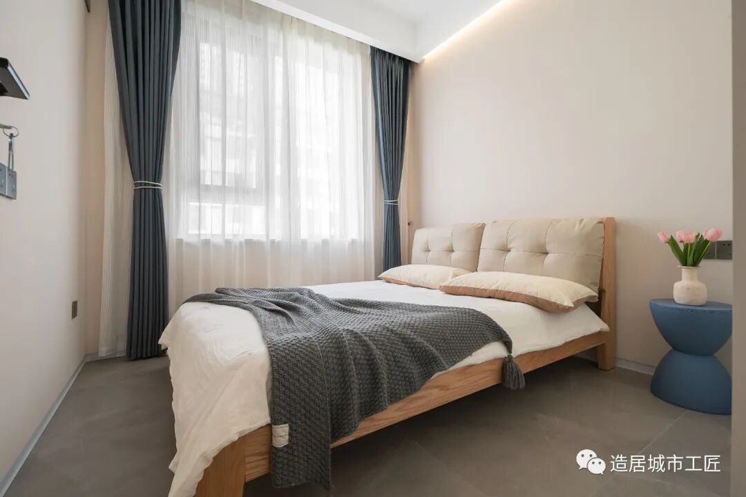 卧室做了些微的墙面拆除和布局调整,去掉阳台部分墙体之后,整体面积得到了扩充,阳光大面积入室,通透而明亮。