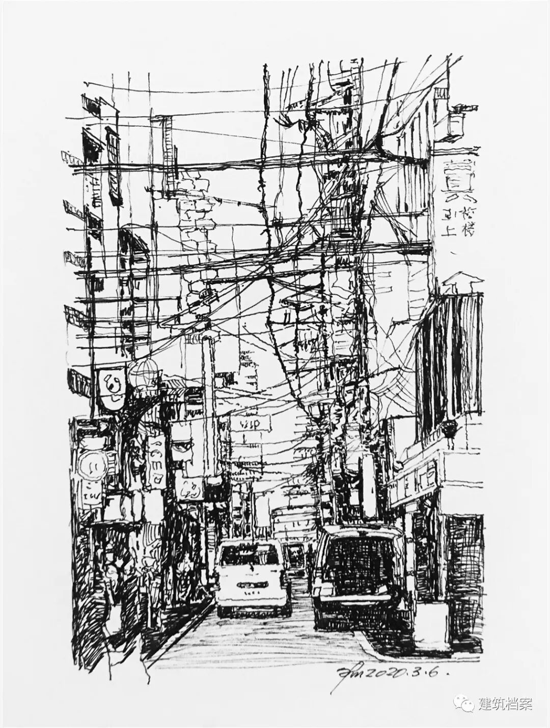 坚持每天一张画!他的速写太牛啦~城市街景、人物全都被描绘了下来~