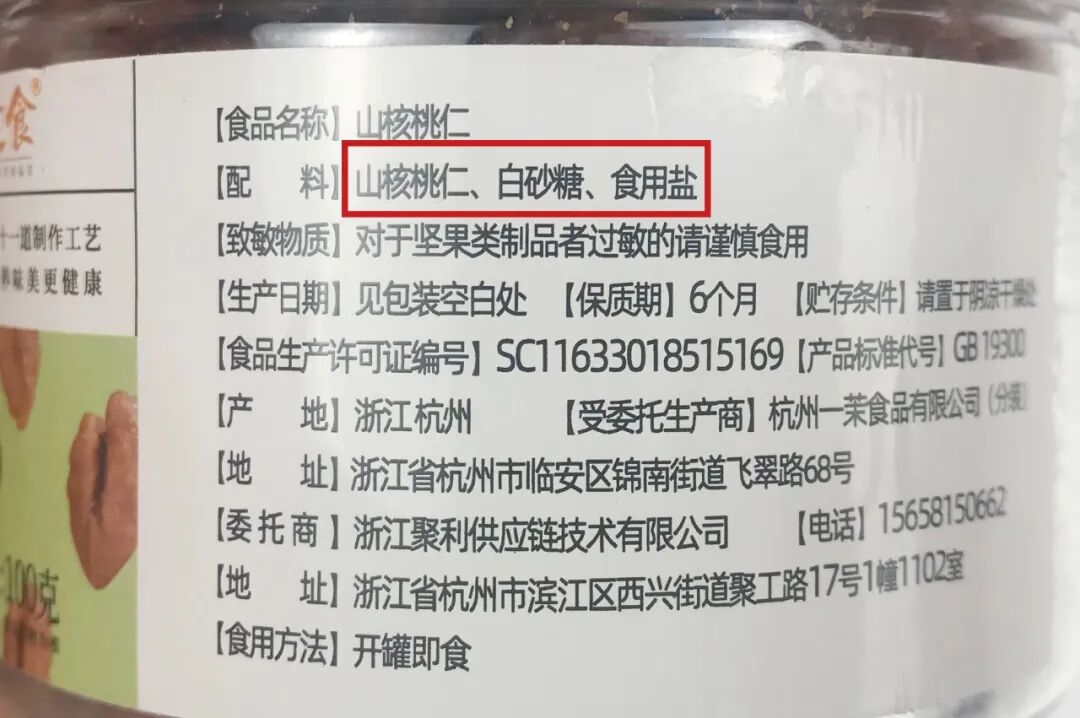 再看我们的配料表,只有最基本的核桃仁、盐、糖。