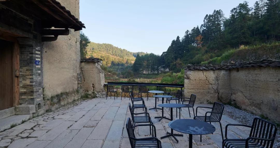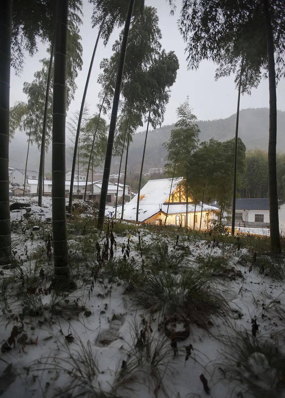拾云山房位于浙江省金华武义县一处山林古村之中,村子保留了完整的夯土民居面貌,村中建筑依山势高差而建,群山环绕,村口处尚存几颗繁茂的古树,已上百年。