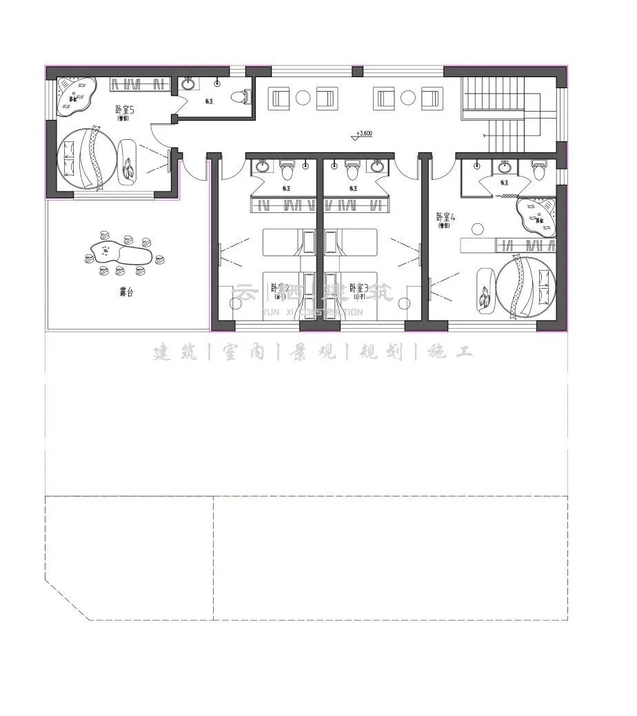 二层西南侧退让较大的活动露台,作为庭院的补充空间,可满足10人左右的聚会和休闲,顶部做阳光顶,后期可做遮阳帘,满足不同天气的使用。