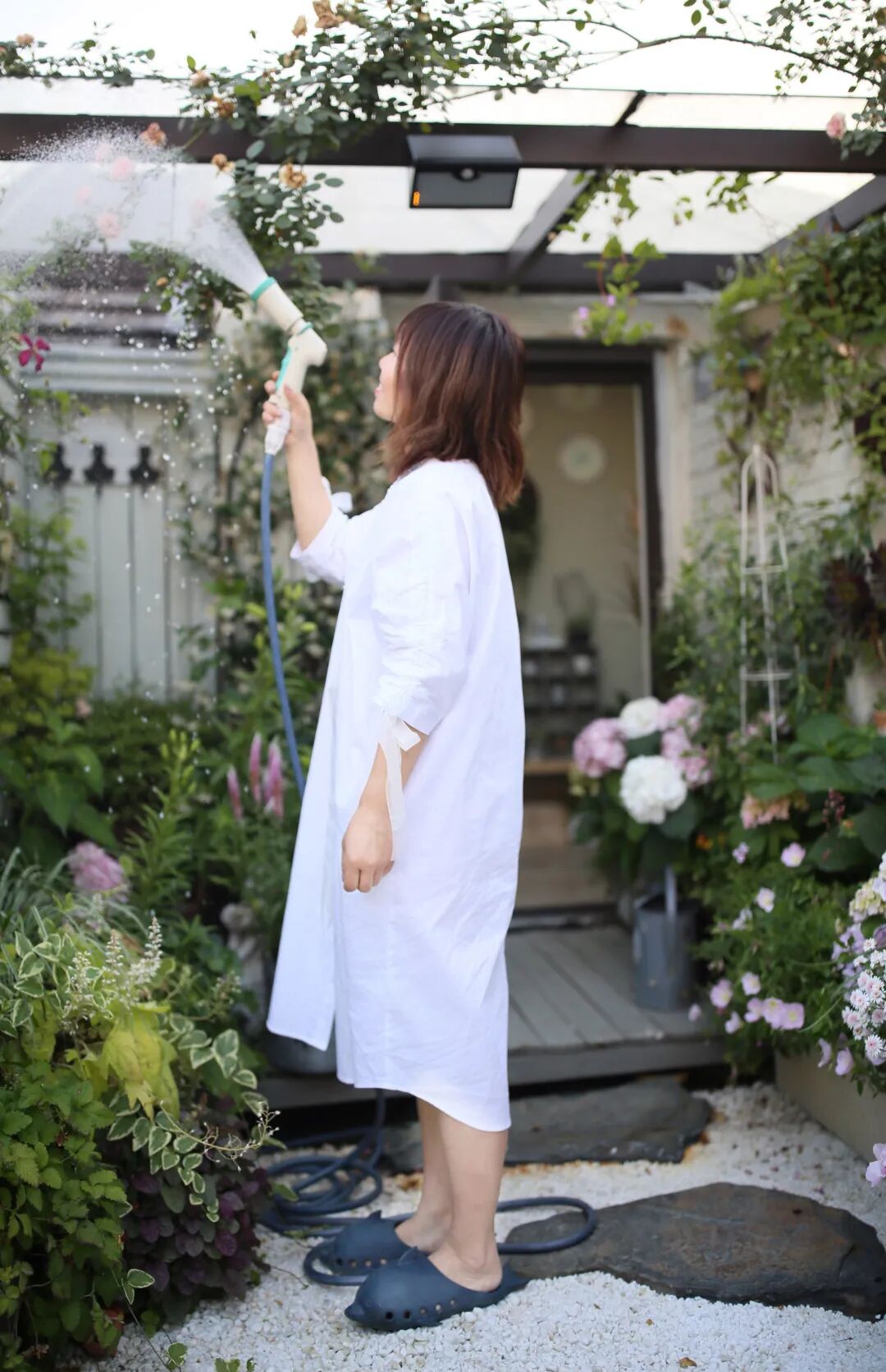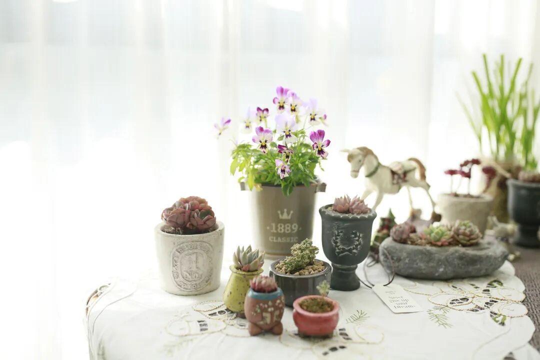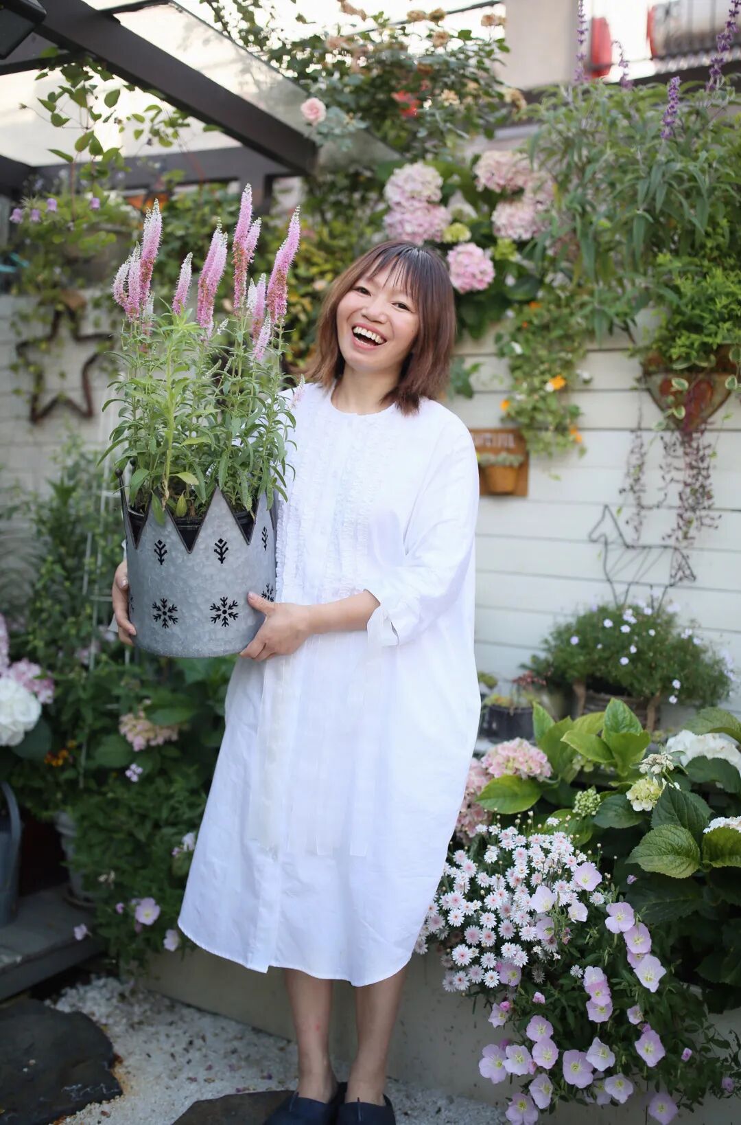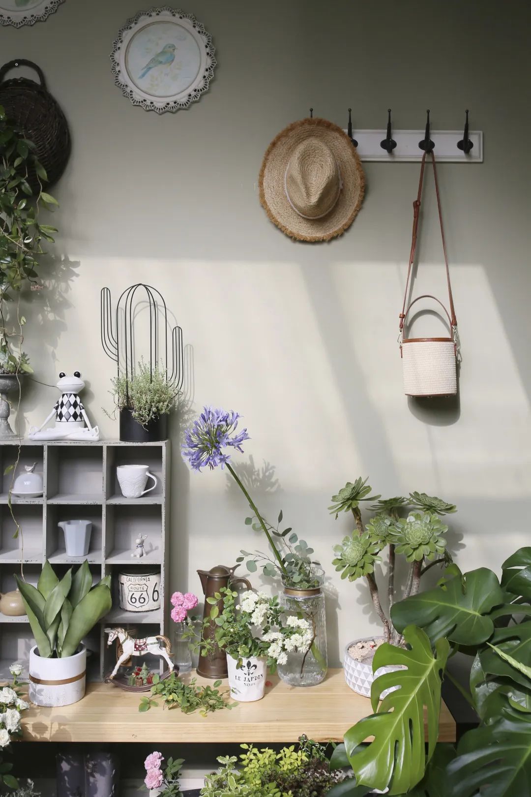 尽量种植一个月不浇水都没事的多肉植物和宿根类的懒人植物,不追新猎奇,花园里只有对的植物在它对的位置。好养易活的花草在我这里都是宝贝,但是我会精心挑选一些别致的花器,更多地注重花器与植物、植物与空间、色彩之间的搭配,力求冷静、克制,遵循less is more(少即是多)的原则。