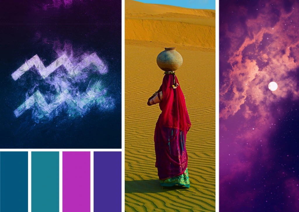 这个星座的力量颜色,由它的守护星天王星赋予,是蓝色的,这是一种和平而深思熟虑的颜色。而紫罗兰色系的加入可以进一步增强水瓶座的灵性和智力。