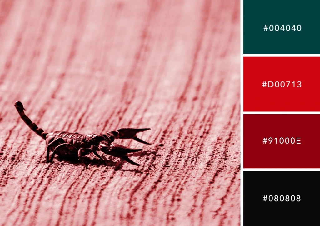 天蝎座的配色灵感,是将红色和黑色与神秘的和受水影响的蓝绿色相结合,以反映天蝎座的智力深度。