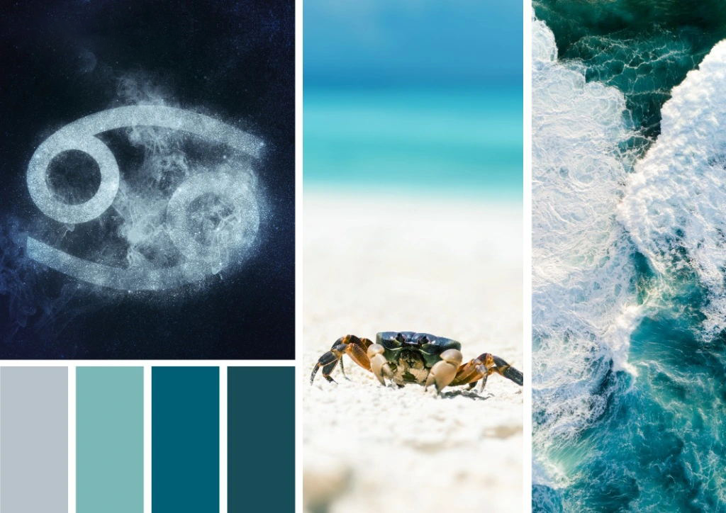 巨蟹座将受益于银色与平静的海水的色调,如海泡石、浓郁的海蓝色和深蓝绿色。