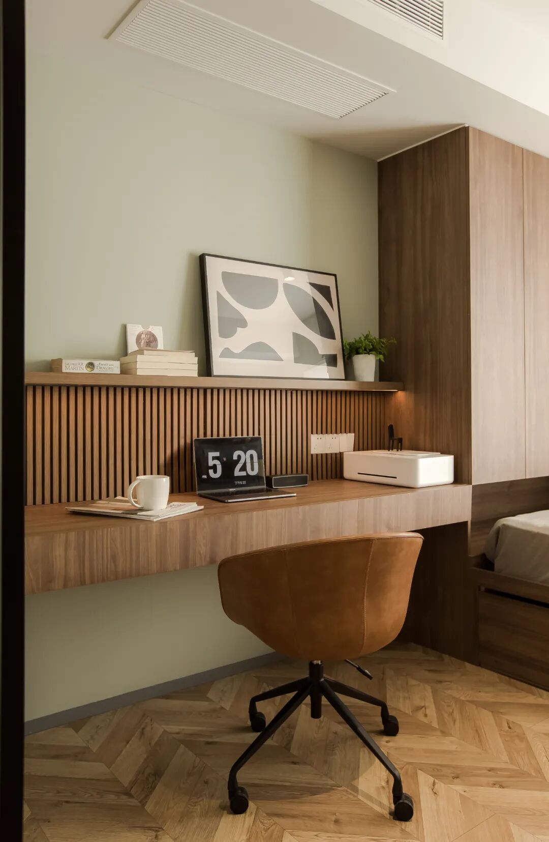 /132㎡复古摩登风,舍弃次卧换来主卧套房,办公生活两不误!