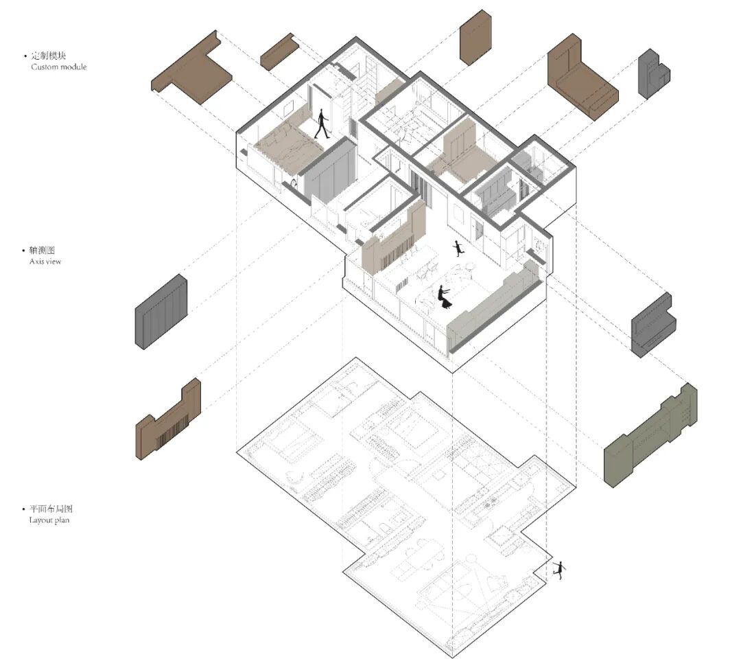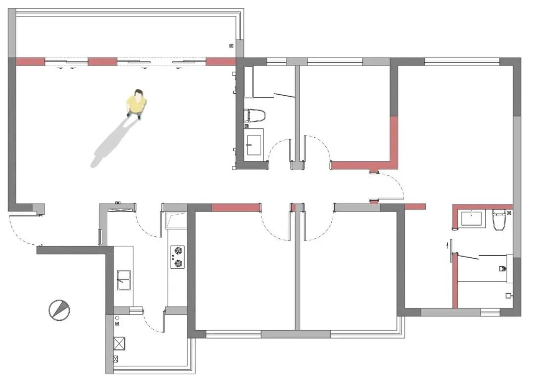 原房子是精装交付,常住只有屋主一人,格局比较符合他的生活需求,因此只做了微调,将零散的空间整合在一起,增加动线层次。