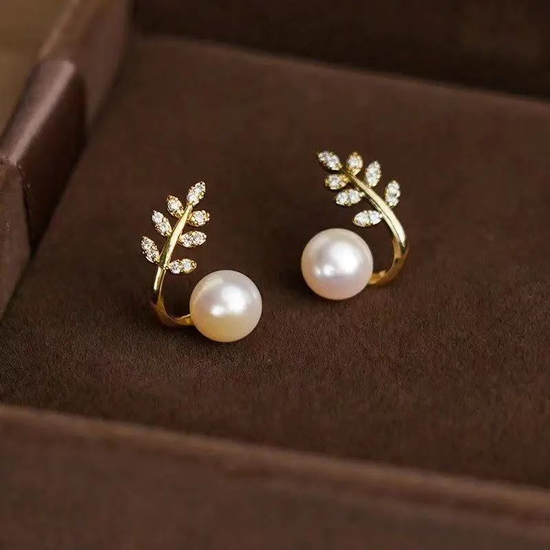 在通体的金色树叶造型中镶嵌了闪闪发亮的水钻,再衔上一粒温润的珍珠,酷感中又多了一丝温柔。