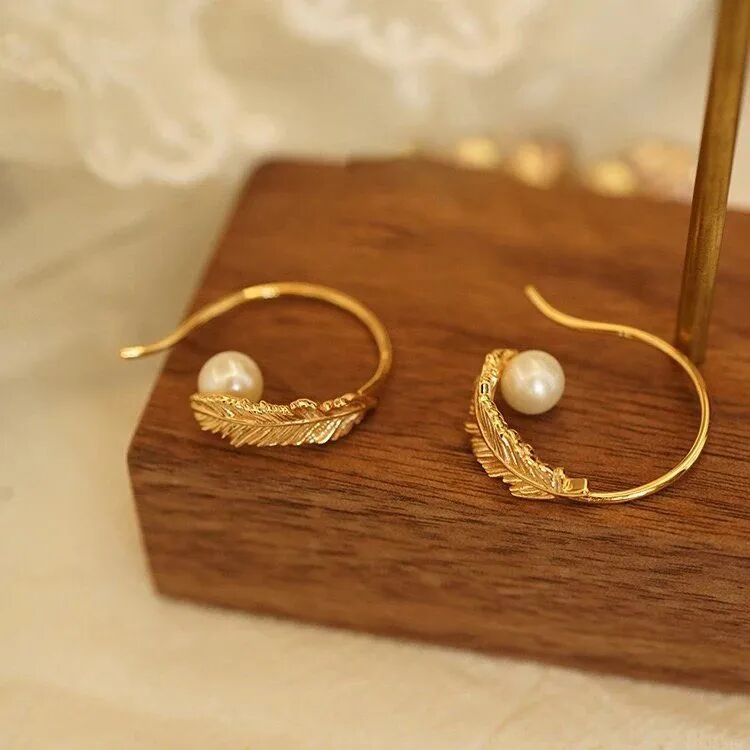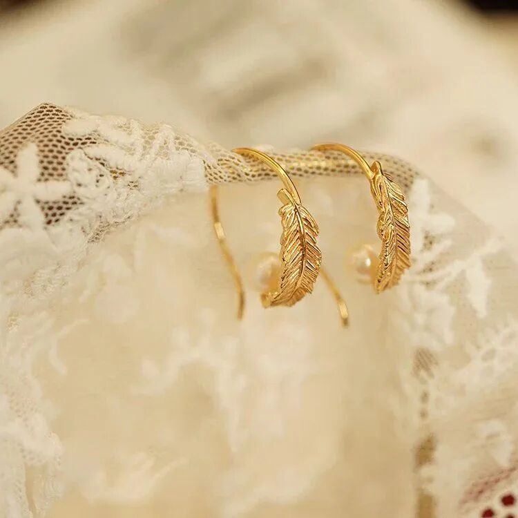 羽毛上还有一颗圆润的珍珠点缀,是不是很像优雅的天鹅在水中游泳,水珠沾到细腻的羽毛上。珍珠的存在提升了视觉点,强化了耳饰的存在感。