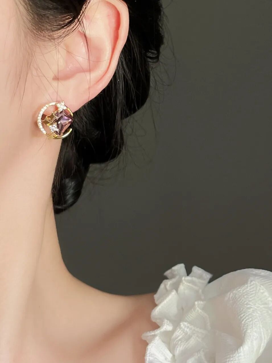 这款耳饰偏向贵气风格,最好搭配浅色系的长裙,较大气的妆容,不过更适合冷白皮的妹子。