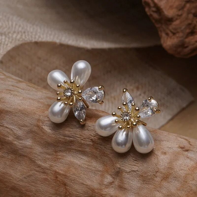-珍珠花瓣耳钉-