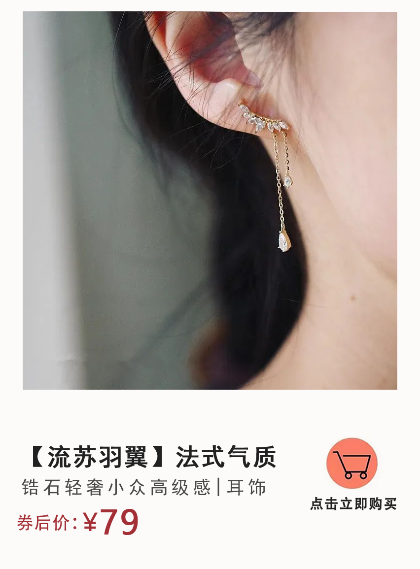 耳饰是属于轻重量感的,戴上一整天也不会觉得累。而且十分适合长脸的妹子,戴上它会显得脸更加精致小巧。