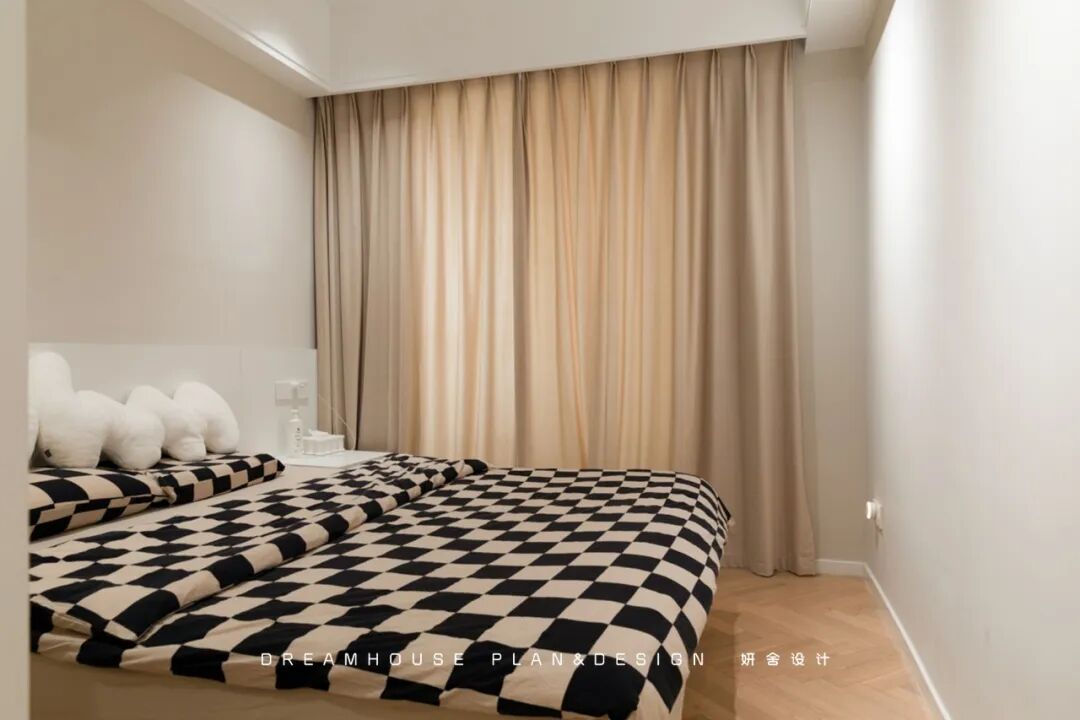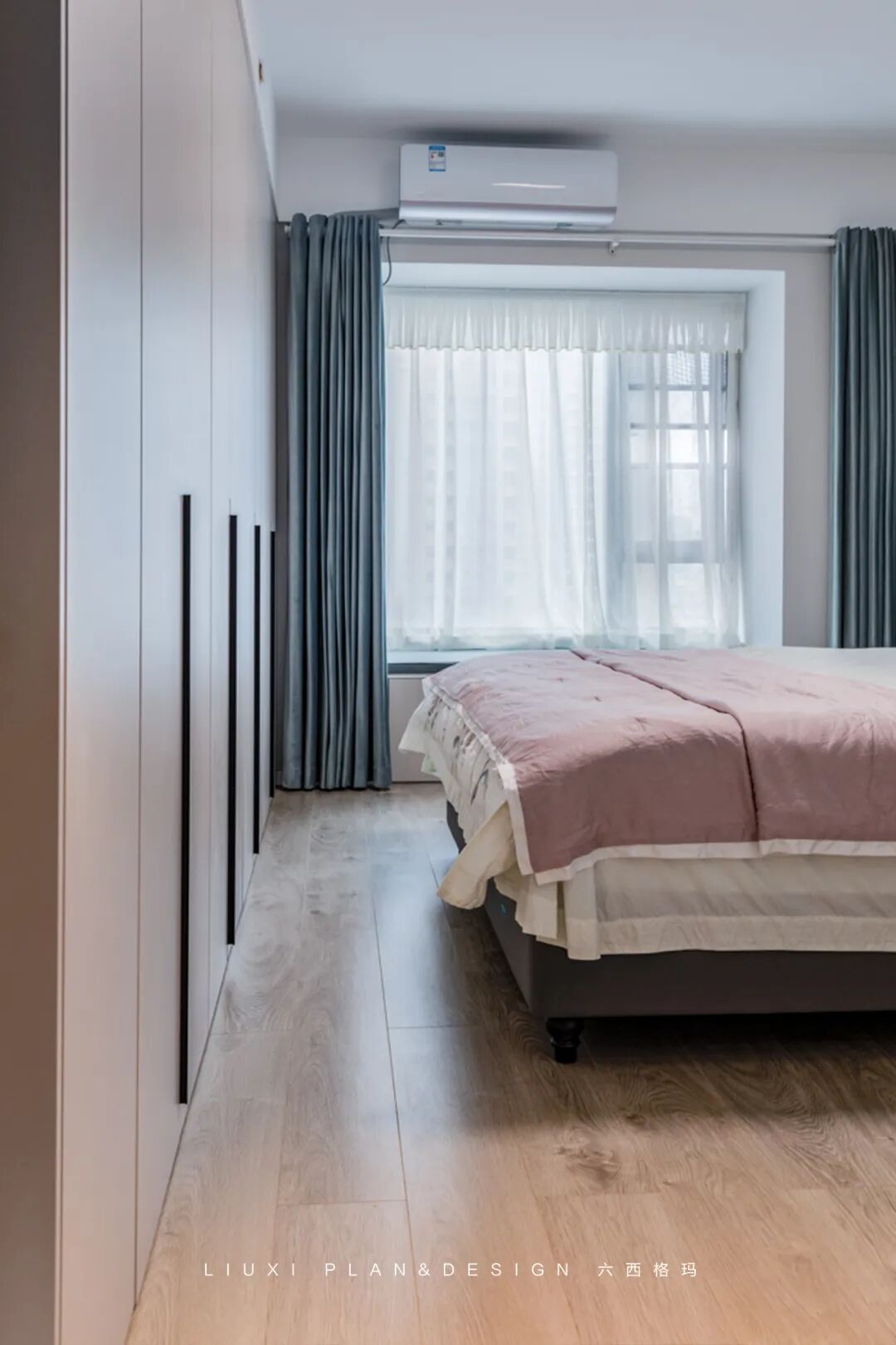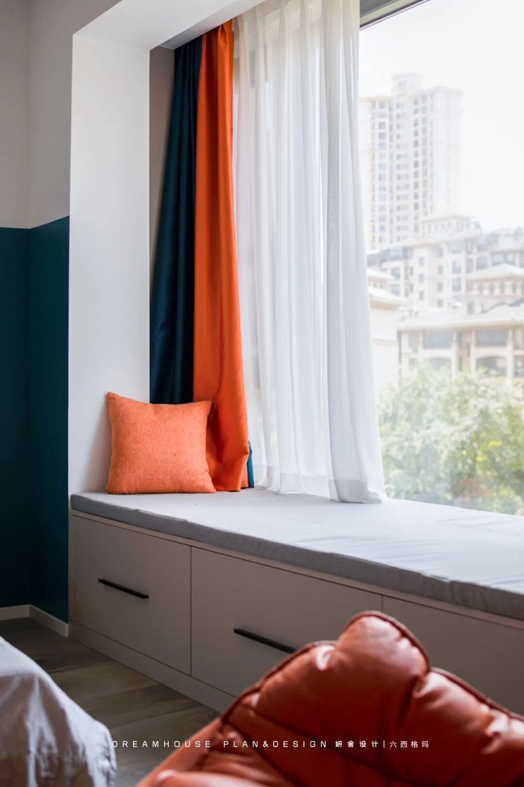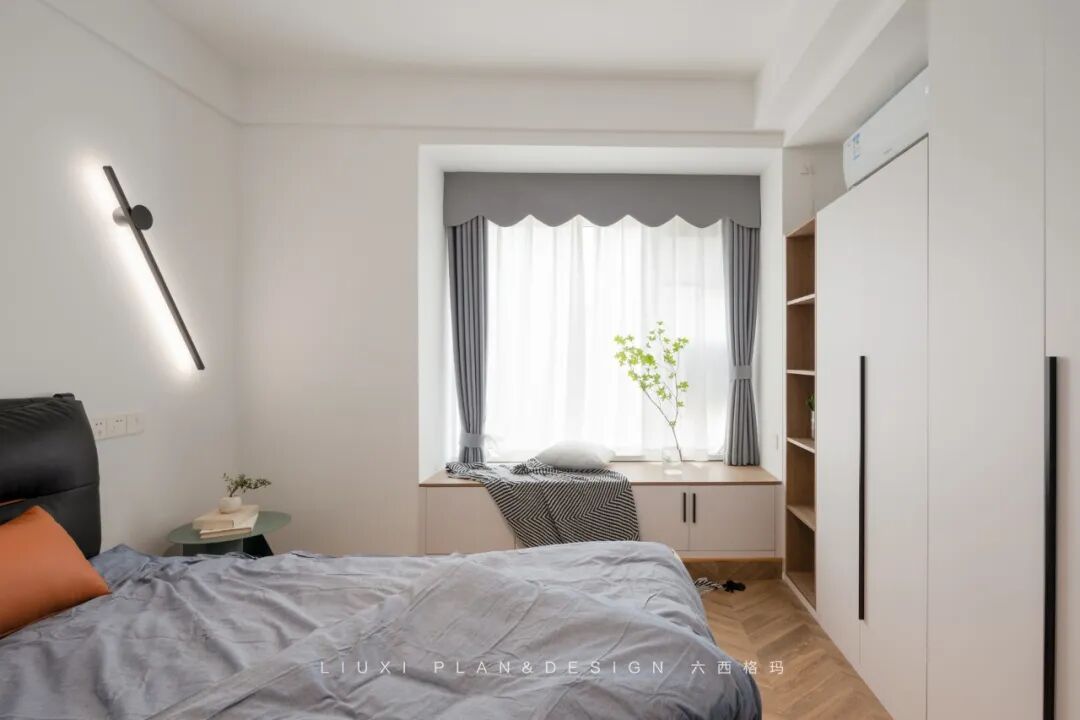 飘窗改成飘窗柜,既保留了原来的休闲功能,也丰富了卧室的容量,提高空间利用率。