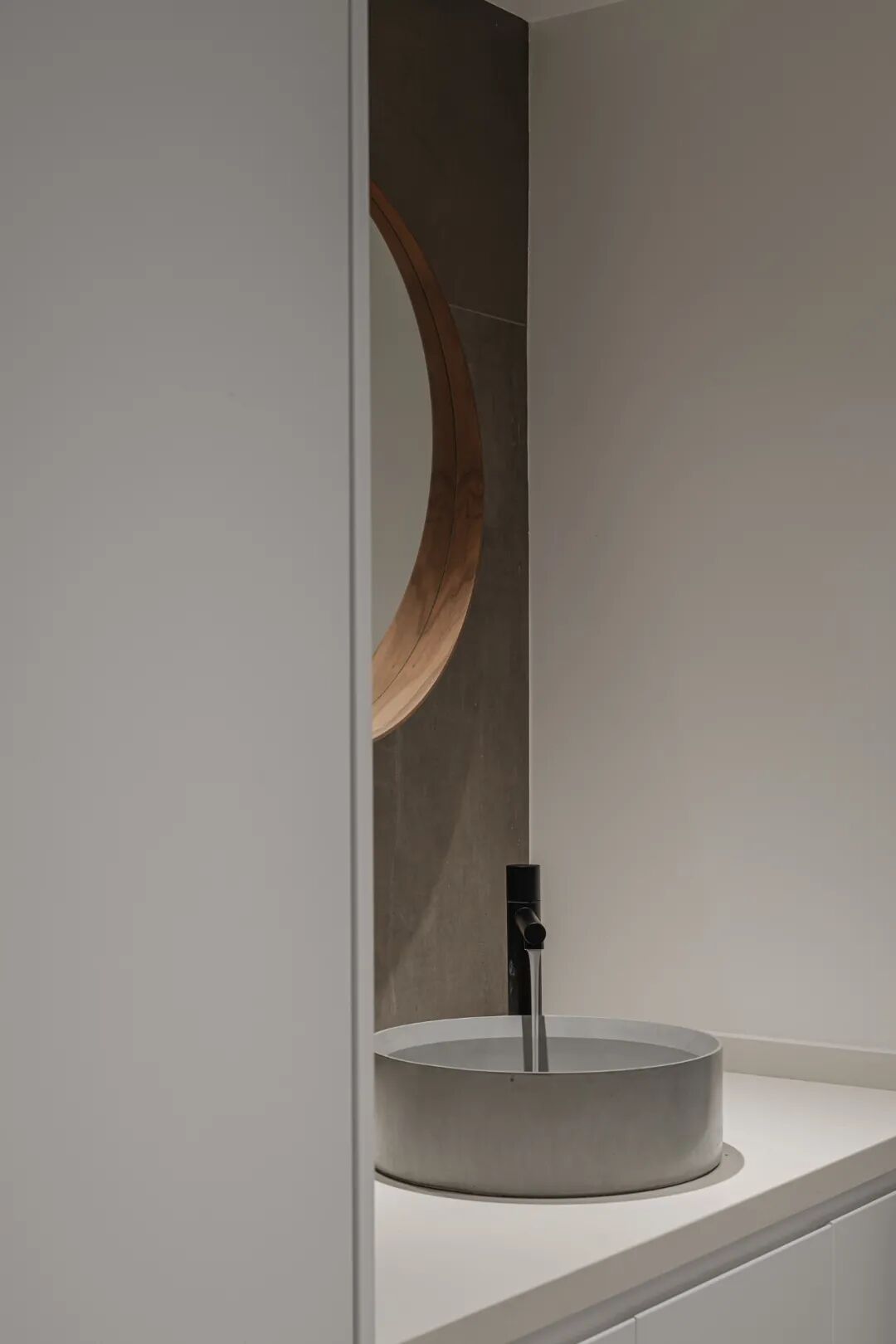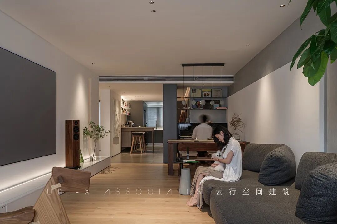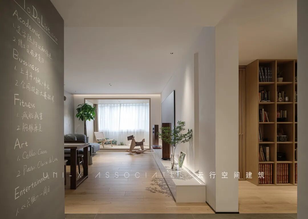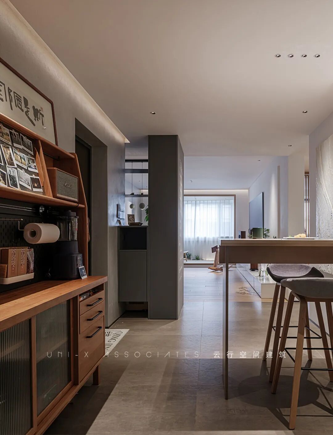 作品集2024-03-03 142㎡旧宅翻新,重新定义家的样子,温馨、舒适、智能… 这是一套面积为142平米的旧宅翻新案例,对于这间房子的主人来说,也许是取决于设计师如何在其中实现他们对于“家”丰富的想象力和审美实践。 图赏 ▲平面户型图 | 玄关 | 入户鞋柜与墙面脱离,在视觉上更为轻薄,南面的采光也可以通过柜体的镂空穿过。并且以矮柜的形式串联,保留了开敞的柜体区域,便于入户的钥匙和包包的放置。同时,矮柜的高度与背面钢琴顶面保持一致,无论从内还是向外观看,空间的呈现都是简洁而干净的。 | 餐厨 | ▲ 吧台灯光 每个人对家都有不同的期待,而智能家居一直是屋主长期以来关注的领域。不同于市面上绝大多数的设计,这次的“智能改造”不是简单的语音控制,而是契合于屋主生活习惯的场景适配。 智能灯光、电控窗帘(百叶)、恒温恒湿系统、全自动清洁组合,这些隐藏的“智能助手”,便利了屋主生活的方方面面。 在吧台区我们运用静电喷涂钢板工艺,将其开槽嵌入墙体内,通过智能设备创建相匹配的场景,点亮玻璃酒瓶,营造高级的氛围感。 厨房PVC折叠移门,平时收纳在柜体之中,厨房和西厨吧台区域的视觉融为一体,开放或者封闭,是一个可以兼顾的轻松选择。 厨房与客餐厅之间的过渡区域承载了双重职能,吧台以及西厨,可以满足屋主的爱好和生活需求,也是家中的小酒吧和咖啡厅。 厨房电器都嵌入到了柜体之中,保持了空间的整洁有序。 | 客厅 | 左边的黑板墙也是鞋柜的侧面,充分利用好物体的每一个面,在保证空间简洁性和体块感的前提下适当附加一些功能。 拆除阳台移门,利用“木盒子”做一定的空间区隔,既保留了阳台的原有功能,又使其嵌入至客厅整体。配合北侧开放式厨房的设计,贯穿南北,构造出更为丰富立体的空间层次。 由于阳台的不规则形状,将其整切,保留了部分下沉区域,用来养些花草绿植,并采用线型灯光和间接光,烘托整个空间的氛围感。 经过精密计算和反复加工,解决了激光电视和抗光幕布的距离问题,顺畅地连接智能设备。同时配合场景变化实现全自动开启和隐藏的地柜设计,使得整个空间更为干净统一。 后疫情时代“家”或许需要承担更多的功能,我们也比任何时候都需要一个满足需求和抗风险能力更强的家。这不仅体现在生存的需要上,更体现在生活的意义上。 | 过道 | 就任何一套旧宅翻新而言,首要的是进行空间的重塑和属性板块的分割,谱写出一条有趣的动线。 客厅背景墙大量的留白,利用平面构成的方式,于墙体右口纵向开洞、斜切洞口,在大面积白墙中创造了气口,避免了佛像直视餐桌。 本来依空间而造,解决结构问题而做的设计,在层叠的空间和白与木色的搭配中,顺势而为,源于结构又高于空间。同时为了使空间呈现更为神秘、庄重,配合迂回的动线设计,将佛龛放置在过道末端。 为增加公共阅读区域,使走道动线更有趣,将次卧过道墙体南移,设计成开放书柜,增加储物空间的同时,也解决了入户对主卧门的问题。 卫生间的长虹玻璃门,在多个朝向上为走道布置良好的采光条件。 为了保证过道的采光,次卧的房门设计成了隐形的格栅门,贴上屋主购买的日本和纸,便是一间具备基本私密性的卧室。 因为还没有孩子,次卧空间现在作为活动室和化妆间使用。 | 主卧 | 卧室的设计为了呼应整体的设计元素,床背景墙用的是屋主喜欢的防水泥艺术涂料,配上胡桃木色家居,整体色调融洽且温馨。 衣帽间收纳结构是宜家的系统衣架组合,相比衣柜使用上更加灵活。 层板高度可以根据不同的需求组合,衣架组合某种程度上也减少了木板的使用量,降低甲醛的释放量。 | 主卫 | 主卫是柔和的灰色空间,增加了浴缸位置,浴室柜与镜柜解决主要的物品收纳,入墙式水龙头,带来简单明快的视觉感受。 | 书房 | 男主人的工作间整体采用的是深灰色涂料,使屋主在这个空间办公更加专注和高效。 | 客卫 | 客卫采取干湿分离的配置,简单的水泥台盆用白色柜体填补过渡缓冲的区域,私密与舒适都有了提升 本文来自微信公众号“亚太室内设计”(ID:ytsnsj)。大作社经授权转载,该文观点仅代表作者本人,大作社平台仅提供信息存储空间服务。 TAGS: 柜体空间设计 相关文章Kleoniki Andr…这是大王Day.281获奖作品《2020最佳图书…精选头像|搞怪来袭!安东尼奥·布埃诺 作品配色清新梦幻的场景插画,充…美国Jennifer Mc…【小鹏设计】设计小改/动力…【首发】地点空间丨打破空间…谢商家不坑之恩!只骗有钱人…