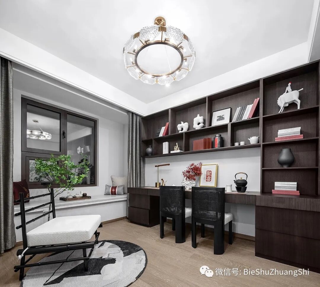书房承载的是一种实在的精神世界,它与物质世界分割开来,可相交为一点,亦可平行而去;摆脱桎梏,衷于热爱,享受独处的时光。