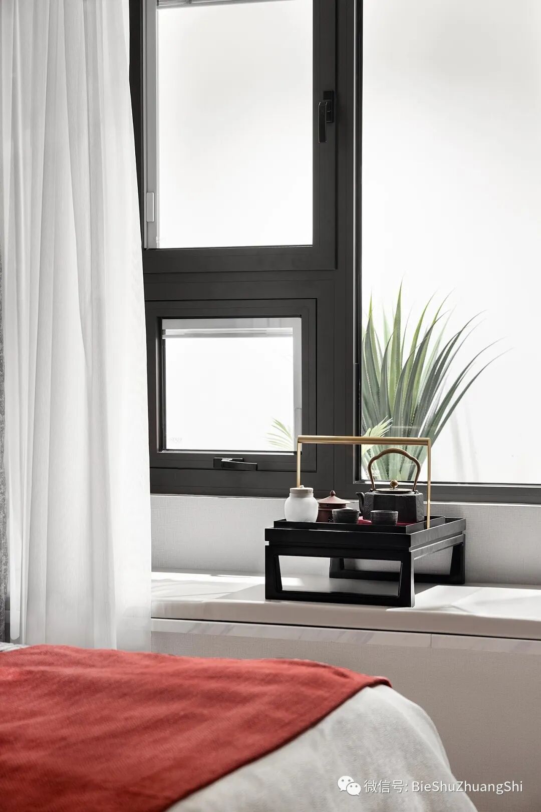 窗把阳光让进室内,自然景蔓延至此,使空间也成为外部世界的一部分,放下一切烦恼,只需跟随内心对美的认知,自在随风,轻盈愉悦。