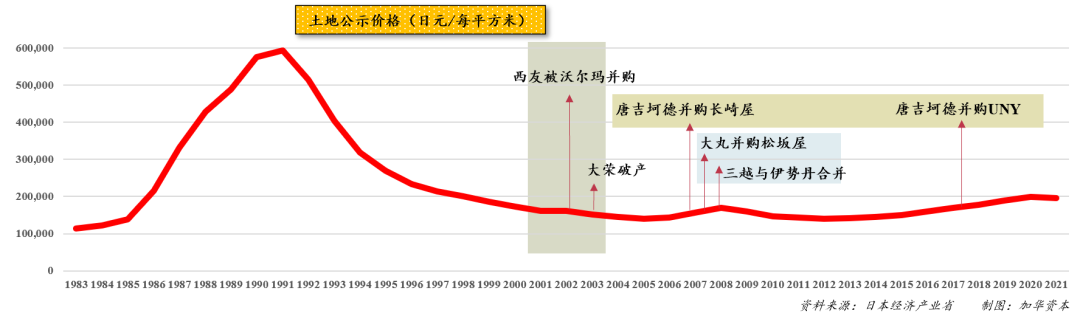 堂吉诃德收购了长崎屋(第一阶段GMS代表),逐渐体现了抗周期业态对非抗周期业态的整合过程。而2020年,全家成为唐吉诃德的大股东。