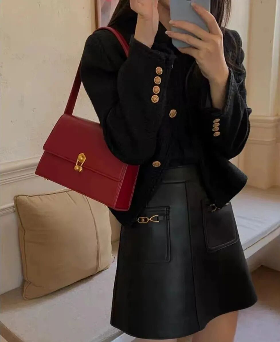 雾霾蓝、少女粉、奶油黄、复古棕、暗墨绿、正红色,这几款走的是前卫活泼路线,氛围感拉满,经典黑白色也很不错。