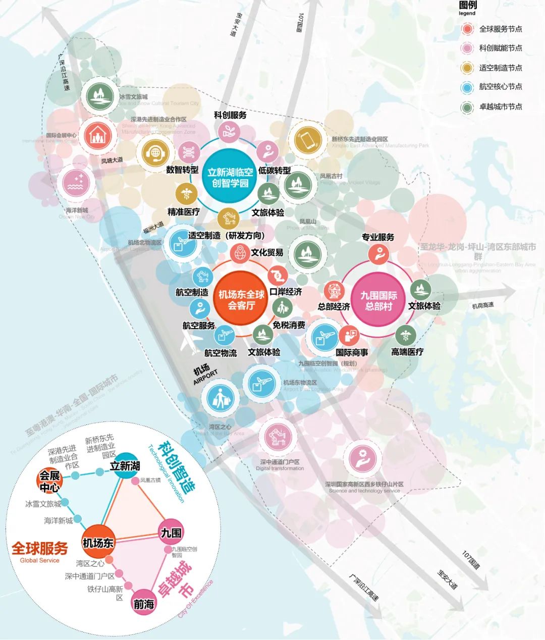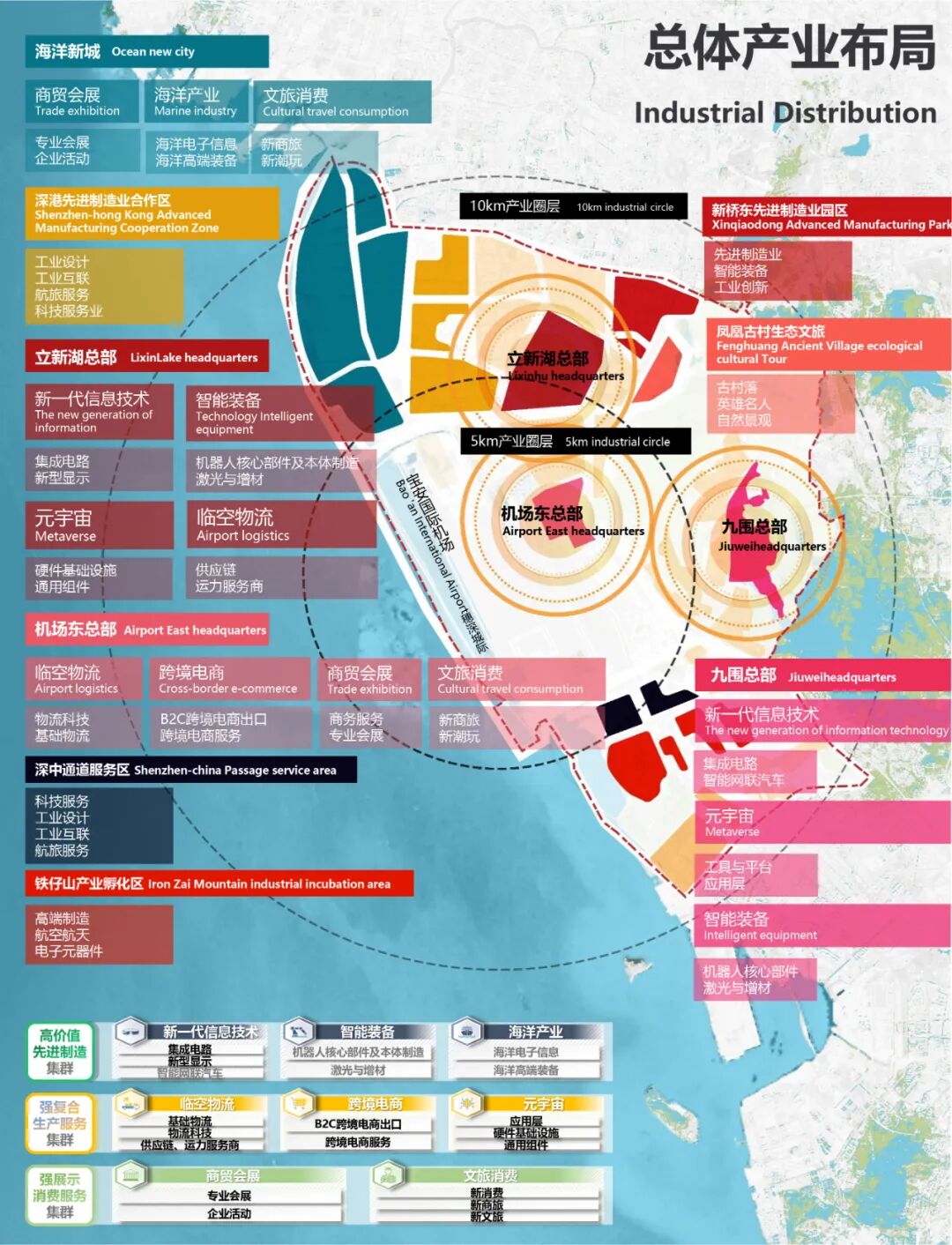 方案 “以城促港,增量提质,助力深圳打造开放性创新城市”的发展思路,形成 “全球生态智慧临空新典范、湾区经济转型升级新标杆、深圳创新策源发展新引擎、宝安卓越城市建设新推手”的战略愿景定位。