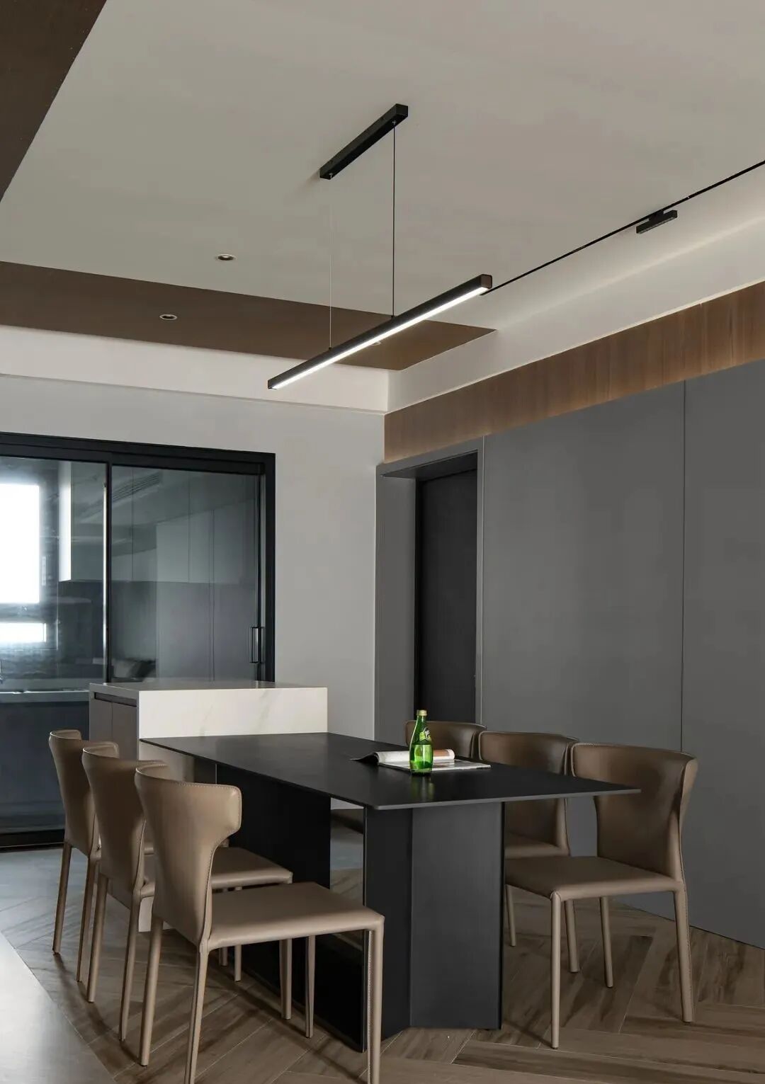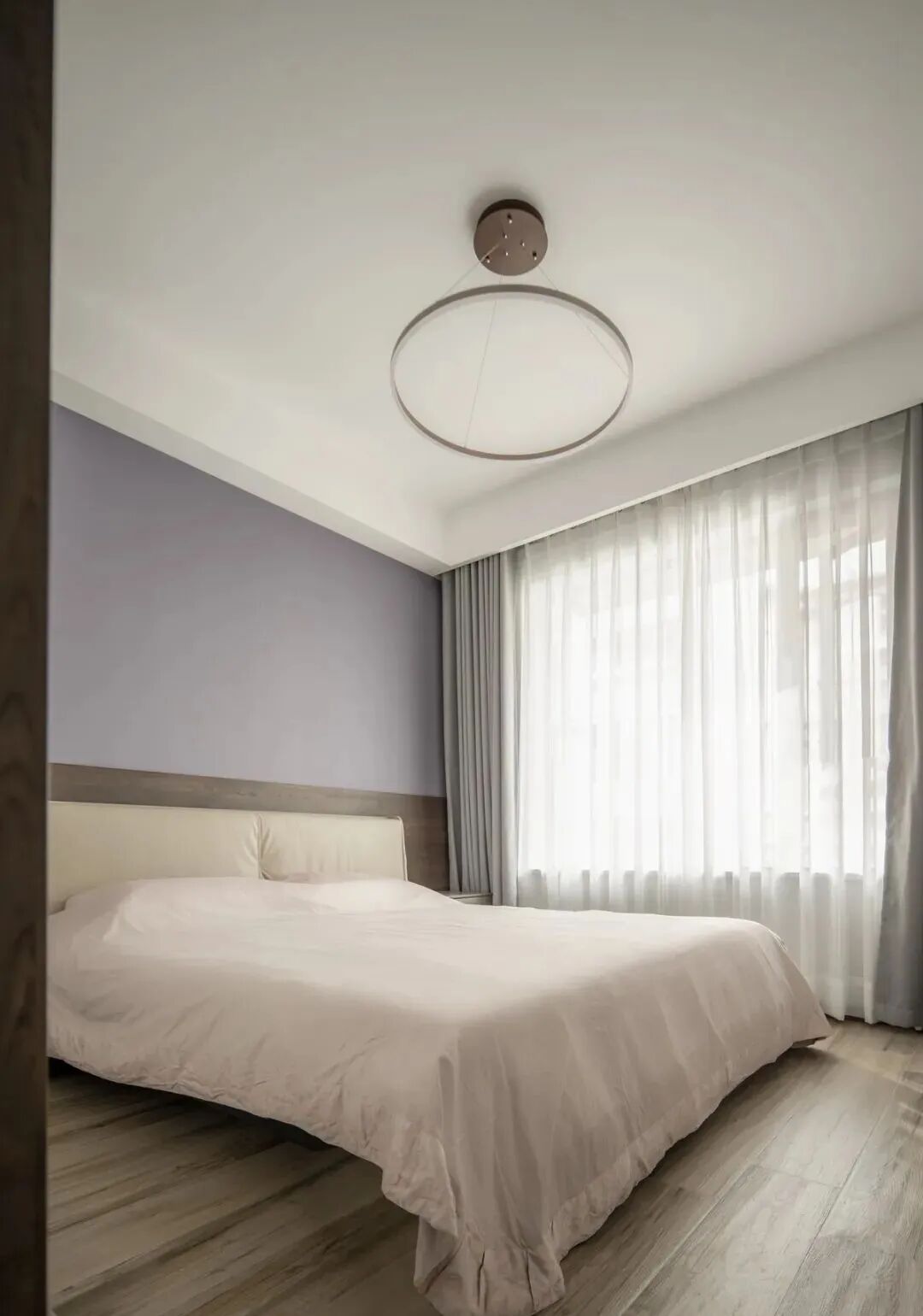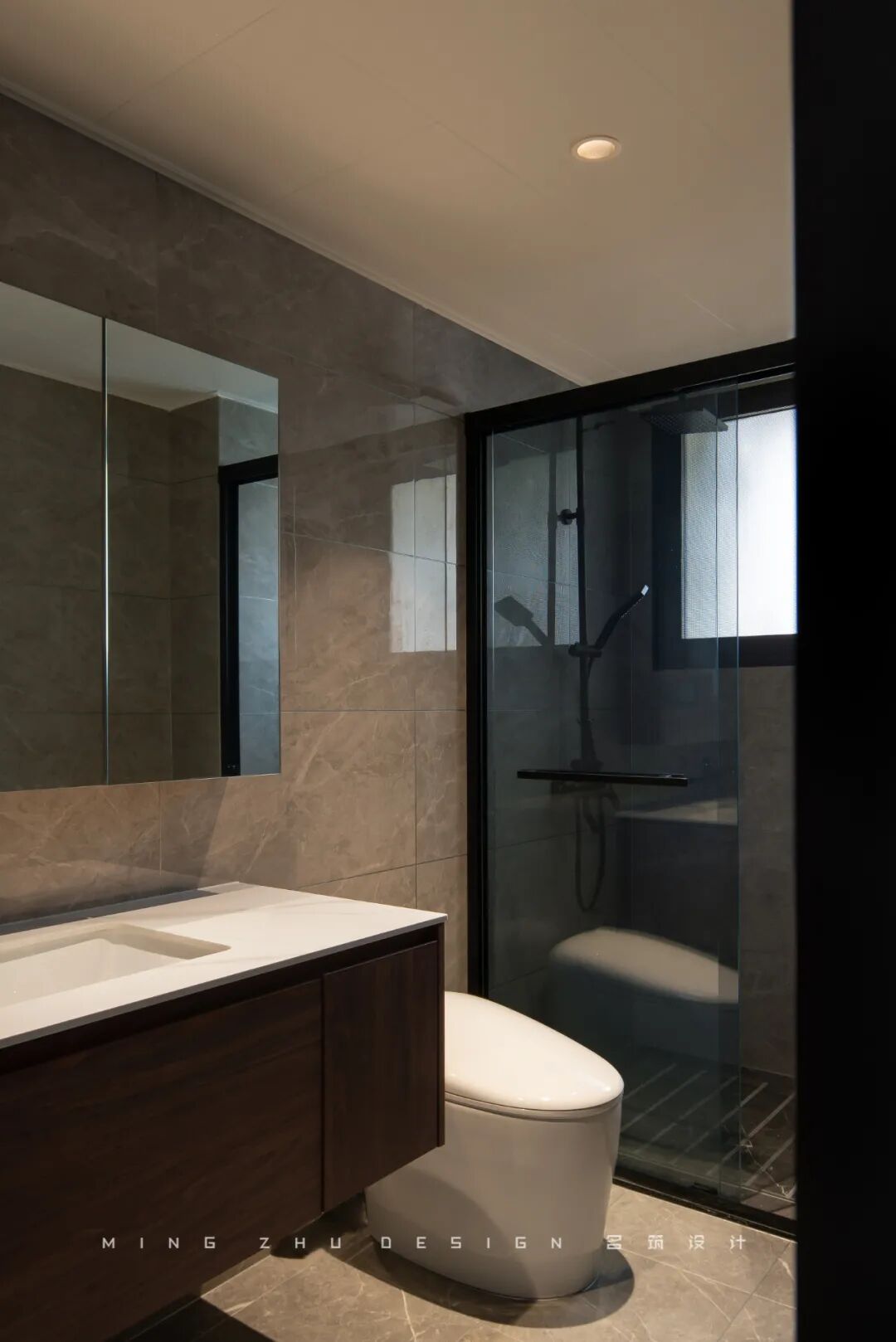 本案是一套面积为157平米的大平层,屋主一家六口居住,要满足一家人的储物需求,除衣柜外将客厅电视墙、玩耍区入户都利用墙面来增加收纳。设计师还通过户型的优化改造使户型更加方正合理。