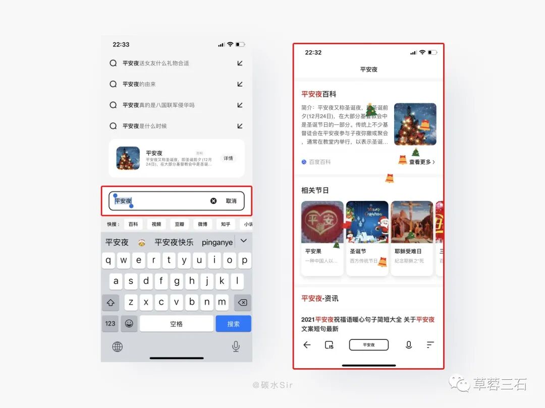 在圣诞节日来临之际,用户使用搜索引擎输入关键词的频率会增加,在此增加彩蛋给用户营造节日氛围。