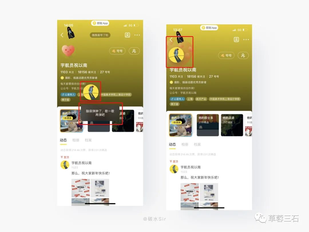 7. 【即刻】头像彩蛋 - 趣味互动回弹,把喜欢强烈表现出来