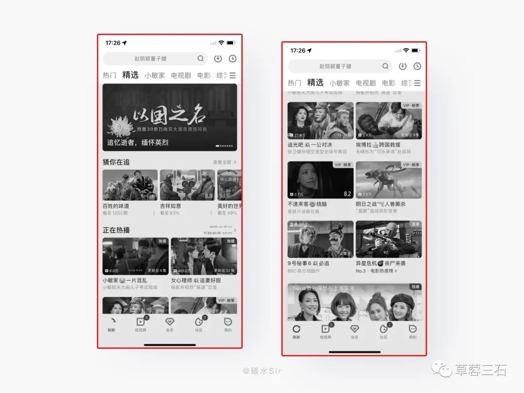 三、【优酷】 – 精选栏目长屏置灰,以示尊重
