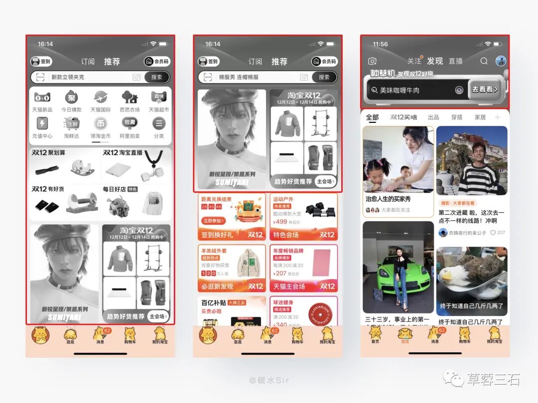 五、【淘宝】 – 首页与逛逛导航置灰,弱化色彩对比