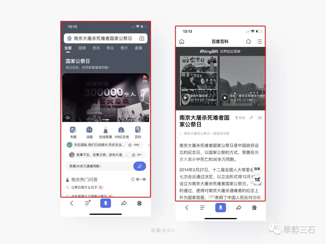 作为最早入局,拥有大量用户的搜索咨询平台,用户搜索看新闻等都是高频发生的事情,如何在不影响产品自身情况下,配合特殊节日去做缅怀的视觉呈现。