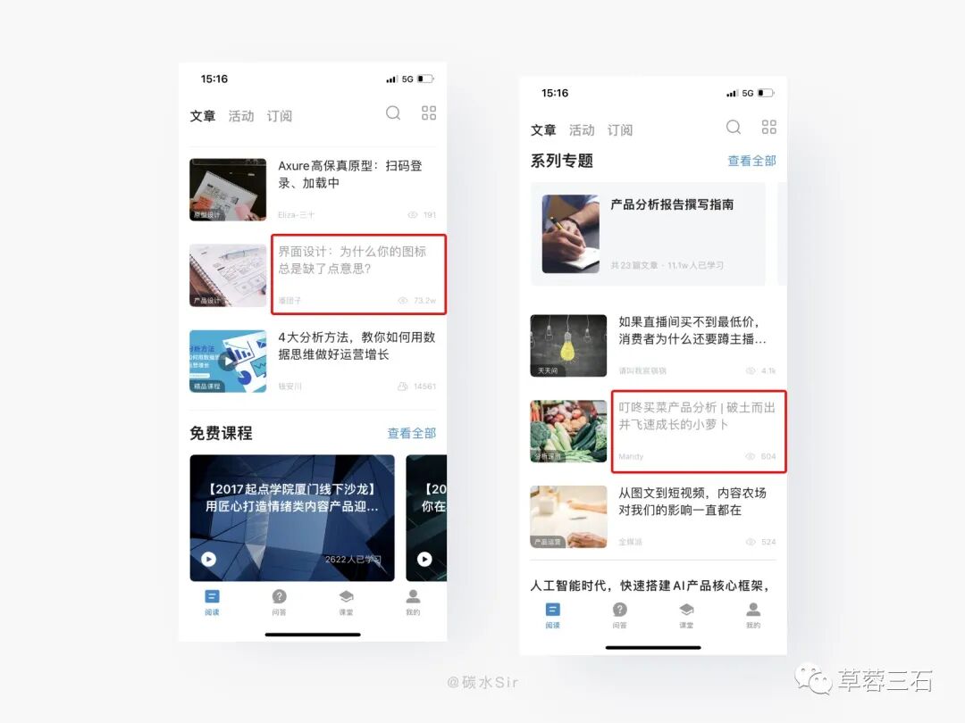 设计方案:在网页端和移动端,当你看完文章返回上一级页面,该文章标题会给予置灰效果,与未看文章形成鲜明对比,用字体灰度来明确表达已看与未看文章的状态,暗示用户进行下一步操作,防止重复进入已看文章中,提升阅读使用体验。只有深度了解用户使用场景,才能洞察到设计机会点,让产品越来越好。