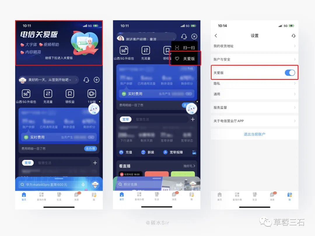 六、【电信营业厅】关爱版入口多,真的很适老