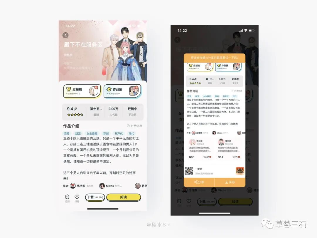 阅读偏社交产品,在使用过程中截屏保存本地,最直接的动机就是发给好友,进行话题共振。