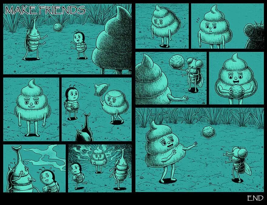接下来,就让我们一起来欣赏一下这些充满黑色幽默的漫画,来看看你是否能看懂这些画作。