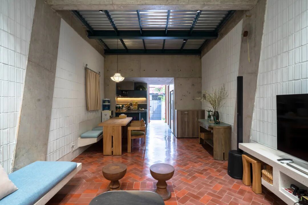 该项目是Atelier Tho.A被挤在越南胡志明市迷宫狭窄街道上的一个小地块中,设计了一个邀请外界进入的家庭住宅。101号房屋采用该地区的“管状”房屋类型,包括一个舒适且通风良好的空间,部分由混凝土墙组成。