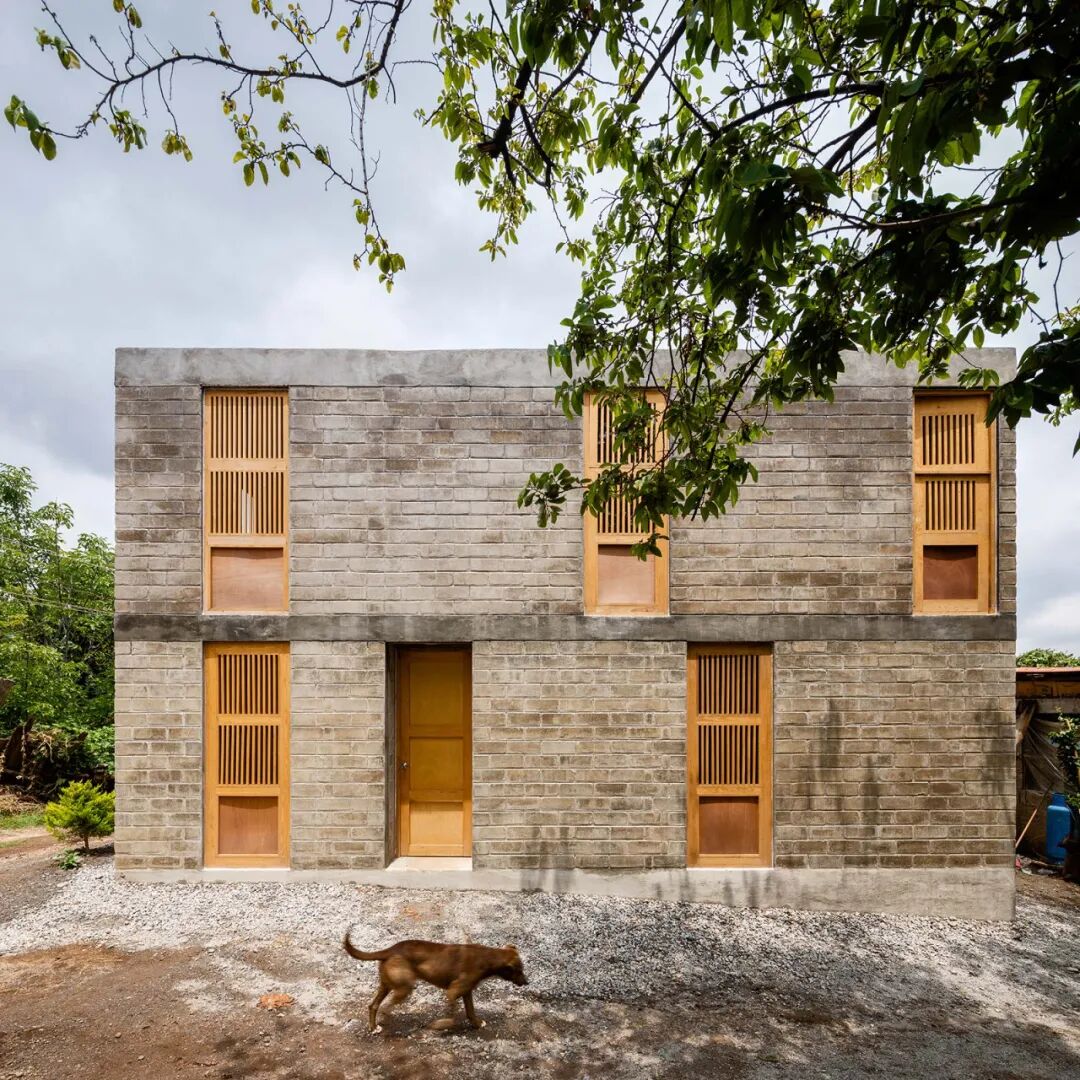 在立面上运用砖体装饰,在外观上质朴而粗糙,朴实无华、不加雕饰质地坚固耐用,并且具有通风、散热的效果,在立面融入了不少红砖元素,显得粗犷、神秘、独具特色,展现出一种古朴却又摩登的魅力。