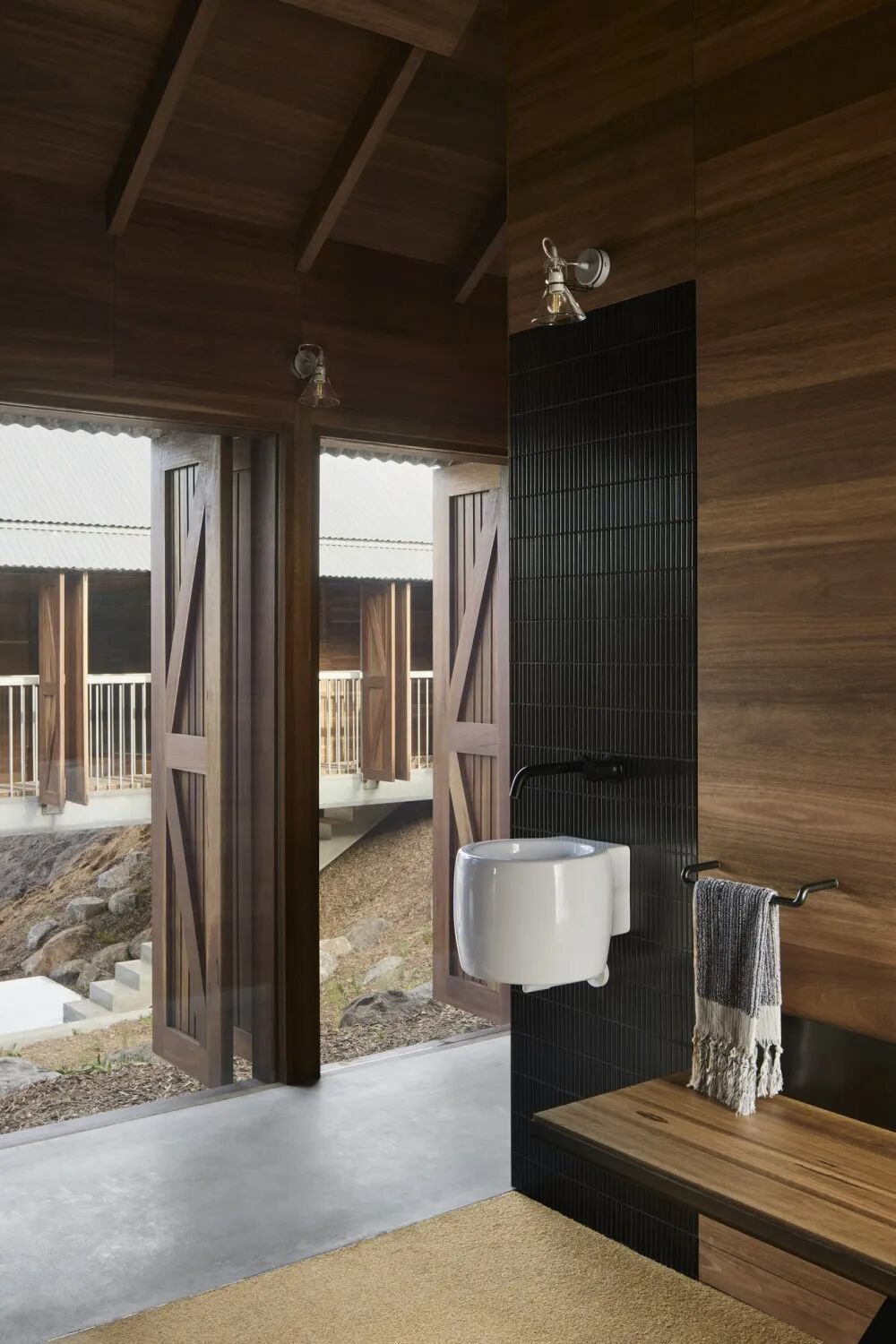 室内材料色调包括木材,发黑的钢,混凝土和琉璃瓦。这所房子完全离网,具有出色的可持续性证书。它是一个坚固的沿海住宅,随时可供家人和朋友居住,旨在应对恶劣的气候。