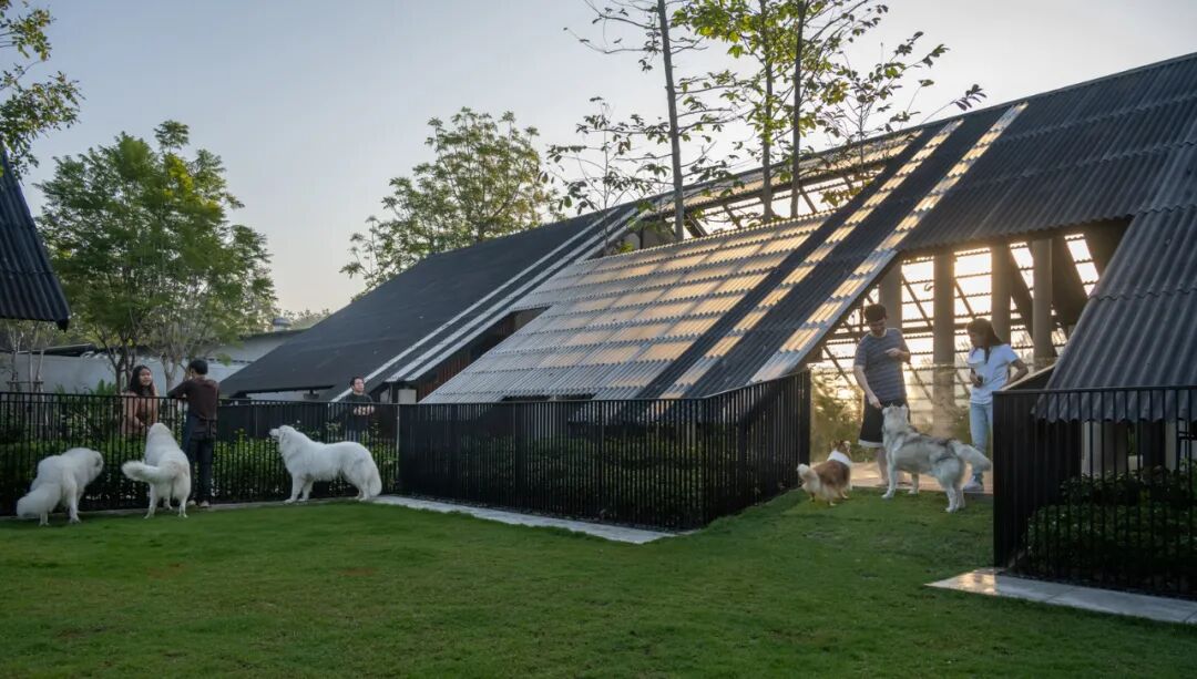 根据当地农业建筑的特点,设计尝试利用屋顶元素感受他生命的存在,拉近人与动物的距离,中间是一个由斜屋顶组合而成的中庭,另外一部分是一个草坪,可以供主人与狗的玩耍。