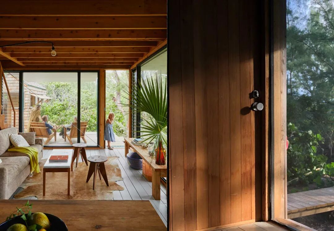 设计旨在提供一种“小房子/大生活”的体验,以生活为中心,融入周边景观。参考岛上的传统小屋形式,该项目力求在材料和景观之间建立统一。